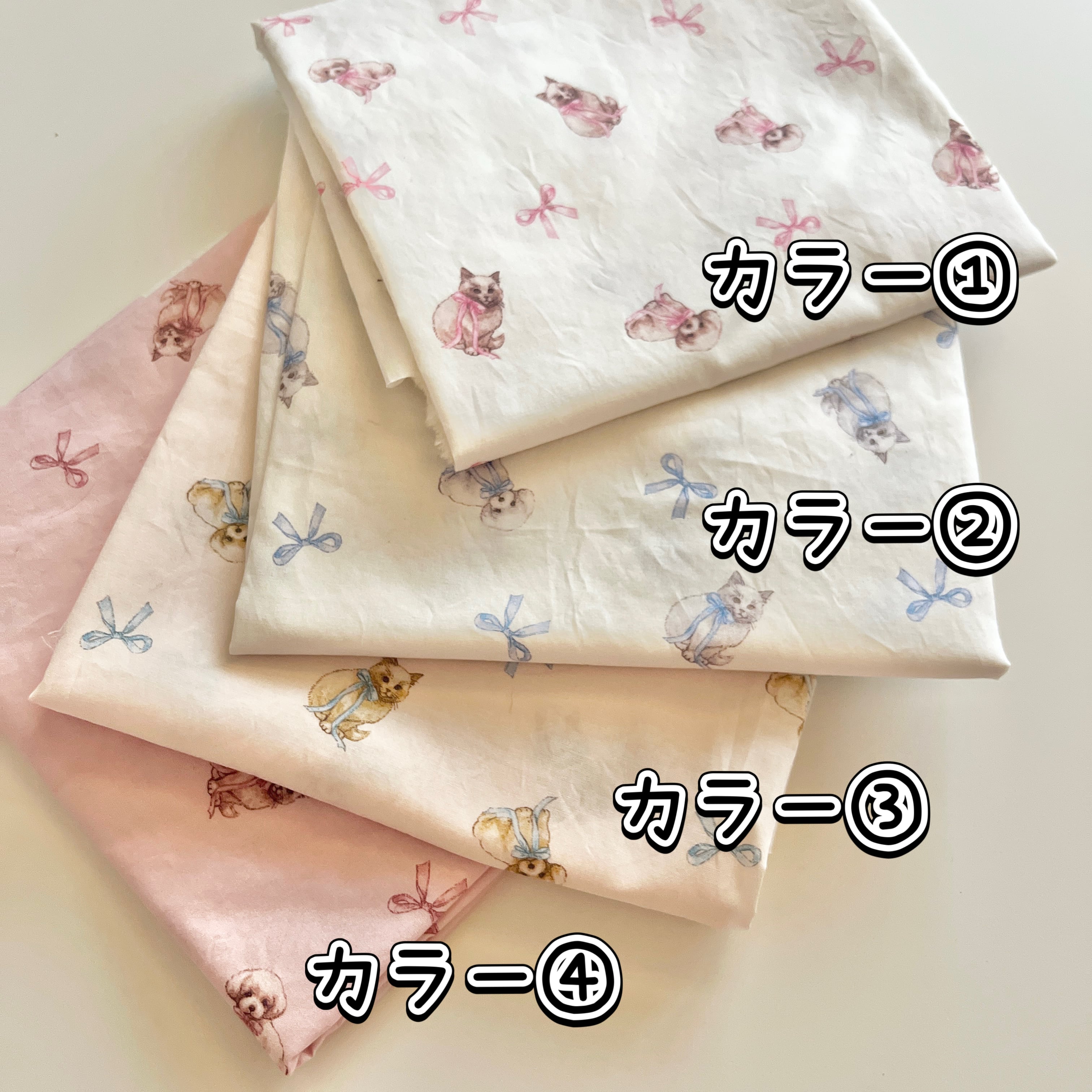 cotton生地(仲良しトイプーと猫)韓国生地 4色から選択