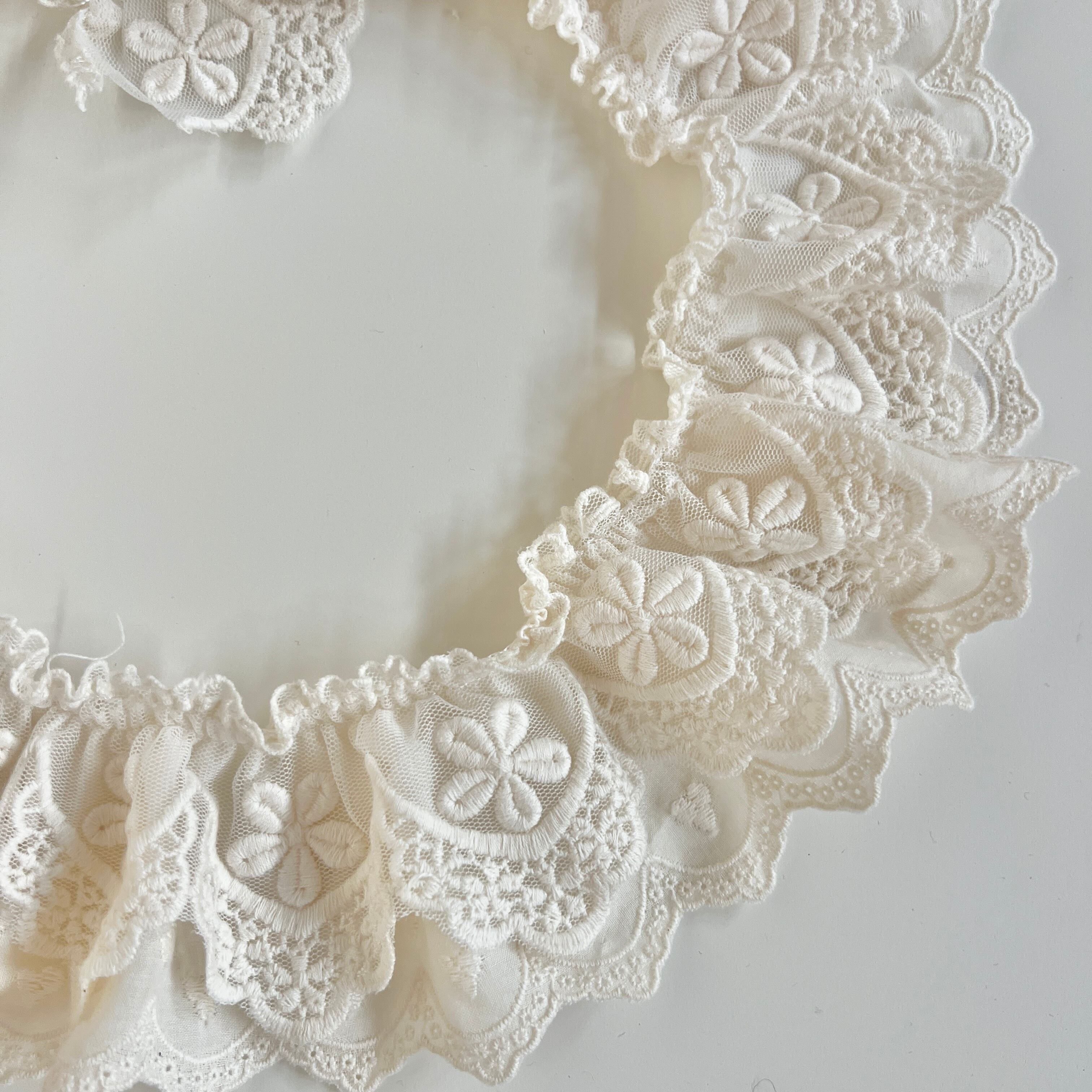 ※3yd以上のフリルリボンのご購入について、仕入れ時から繋ぎ目が縫い合わさっていたり、その箇所を色付きテープで分かりやすく止めていたりする場合がございます。長くご購入の場合この箇所は避けられない状況となり、この場合での不良品のための交換は致しかねます。