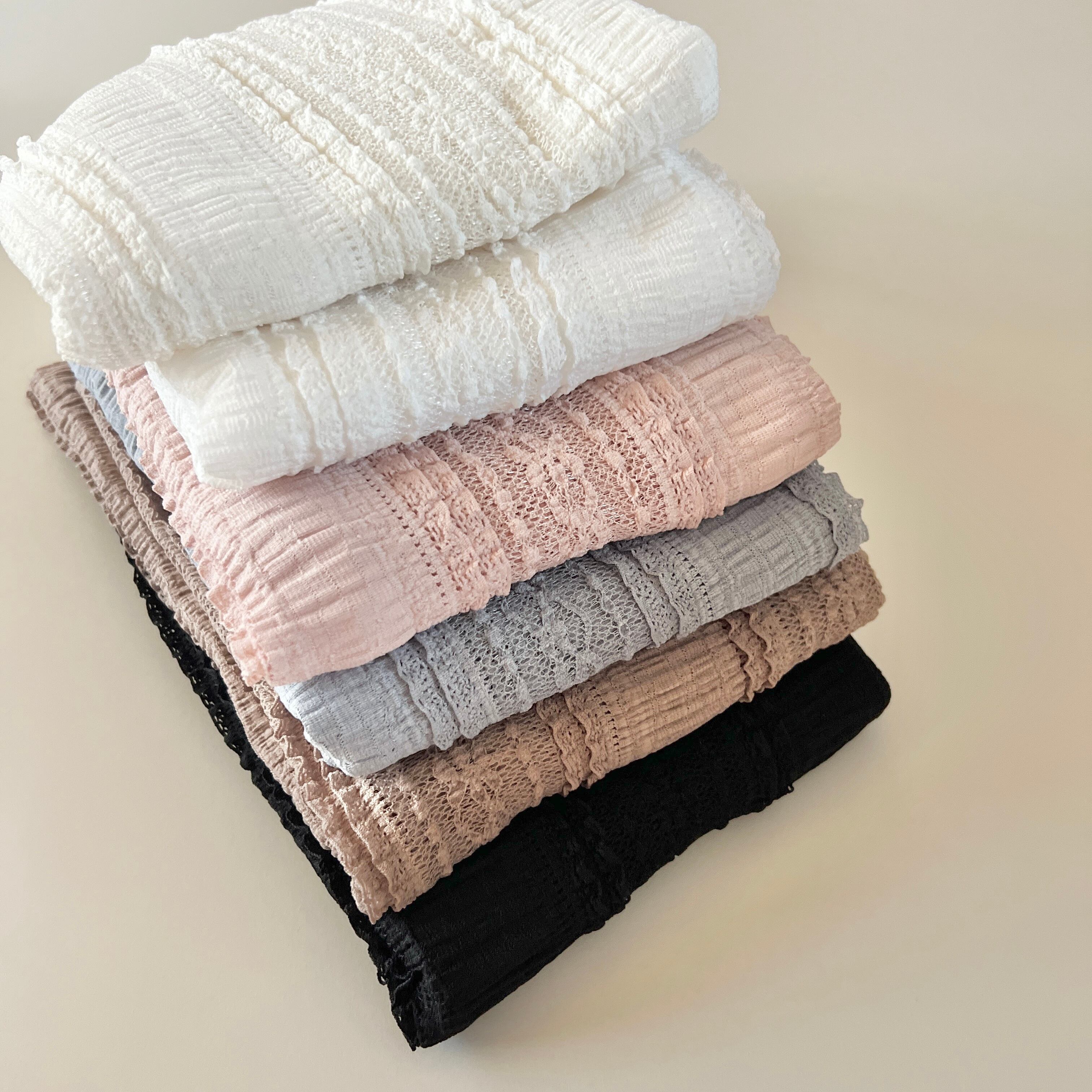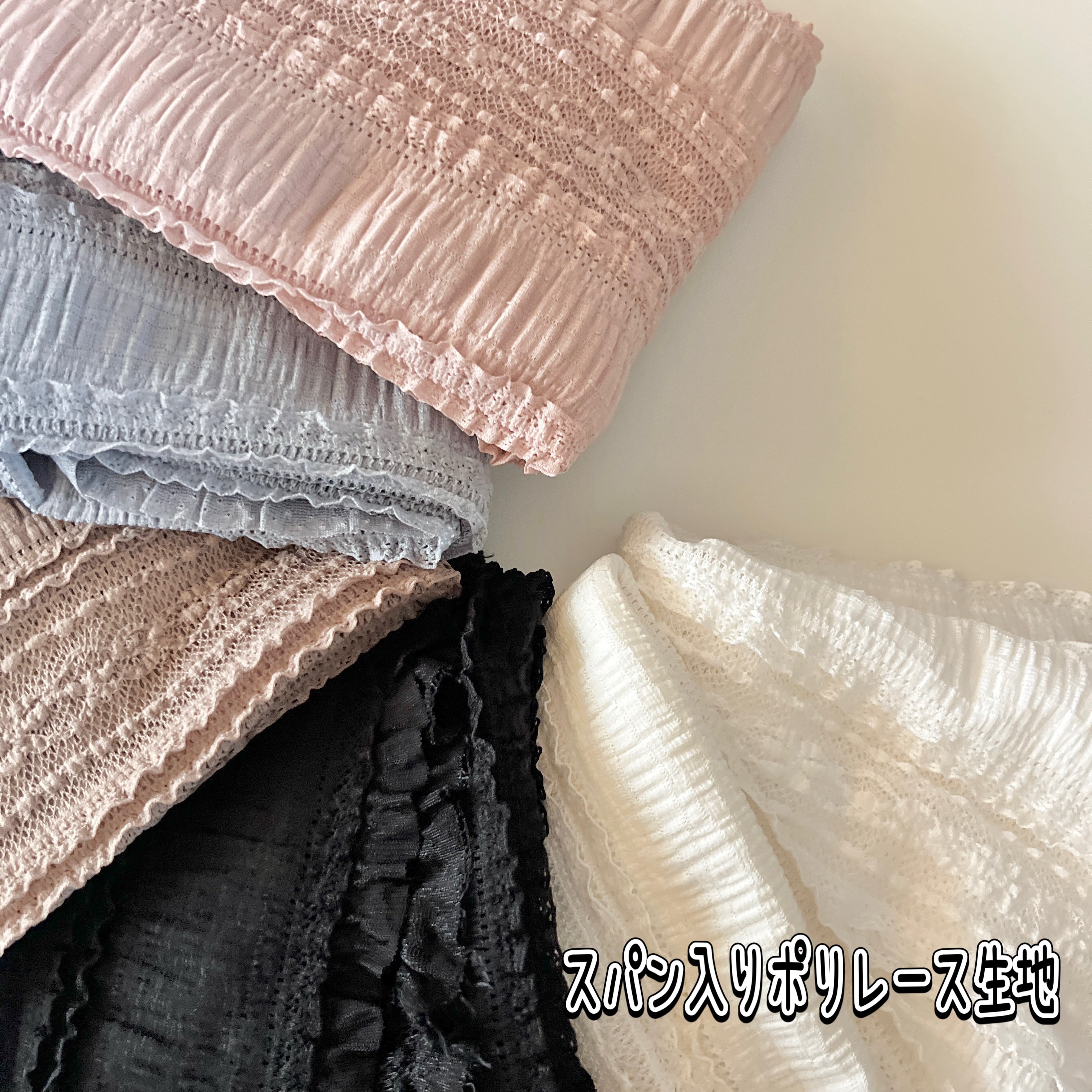 肌触りのいいプリーツやフリル入りのレース生地で、伸縮性がある素材です。