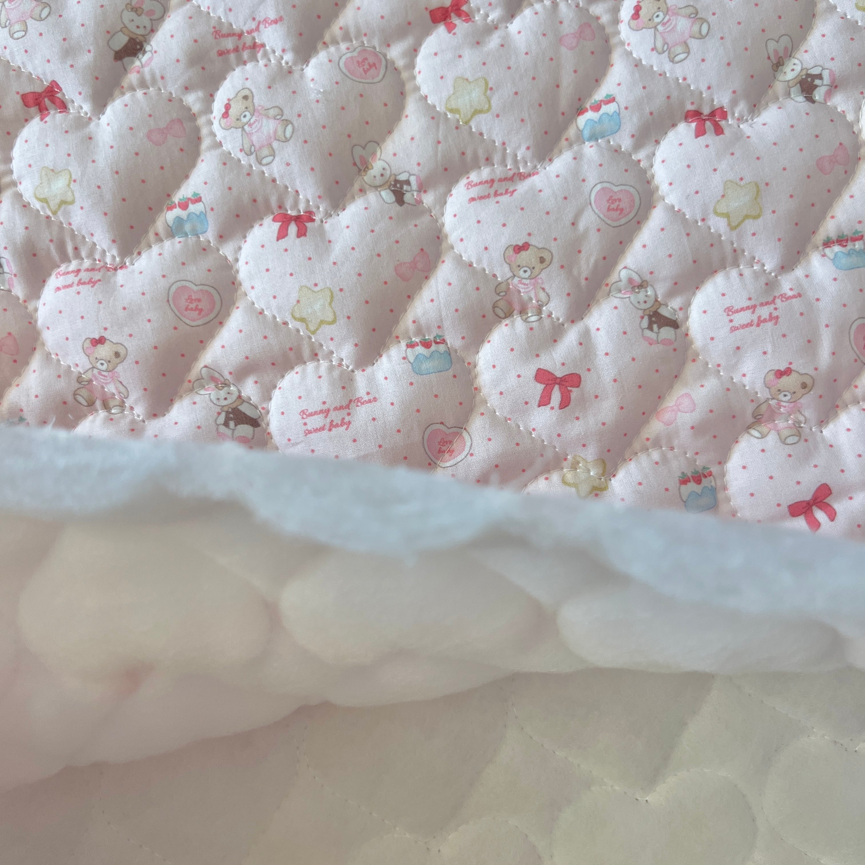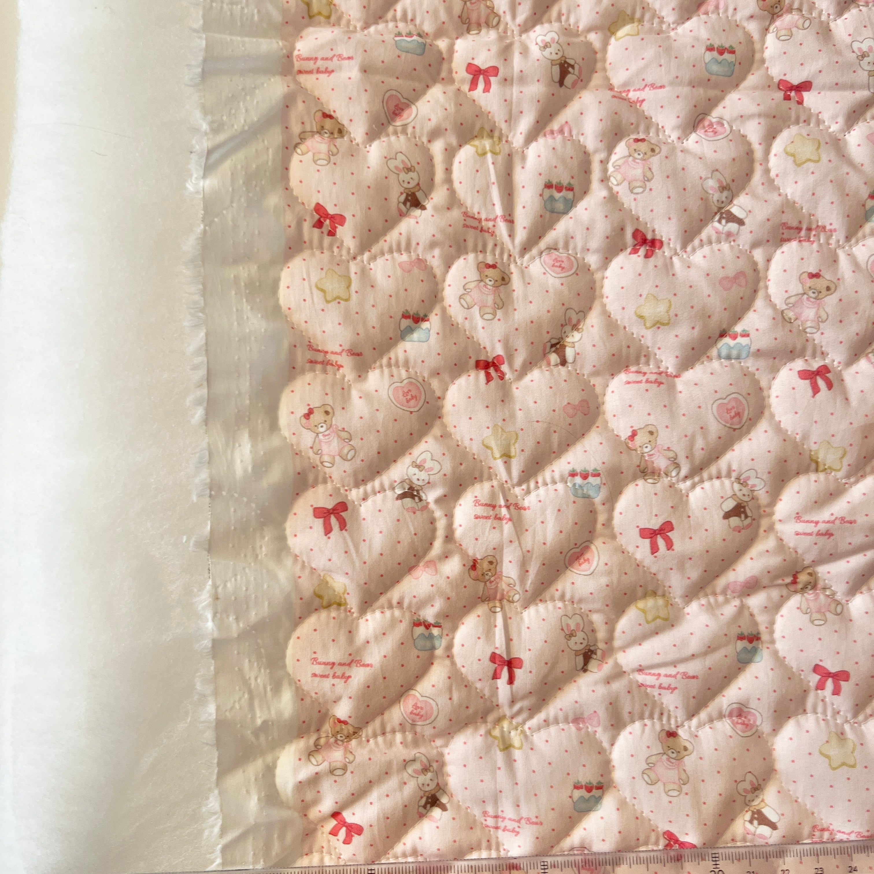 original ハートキルティング生地(bear&rabbit×ピンク) 韓国生地