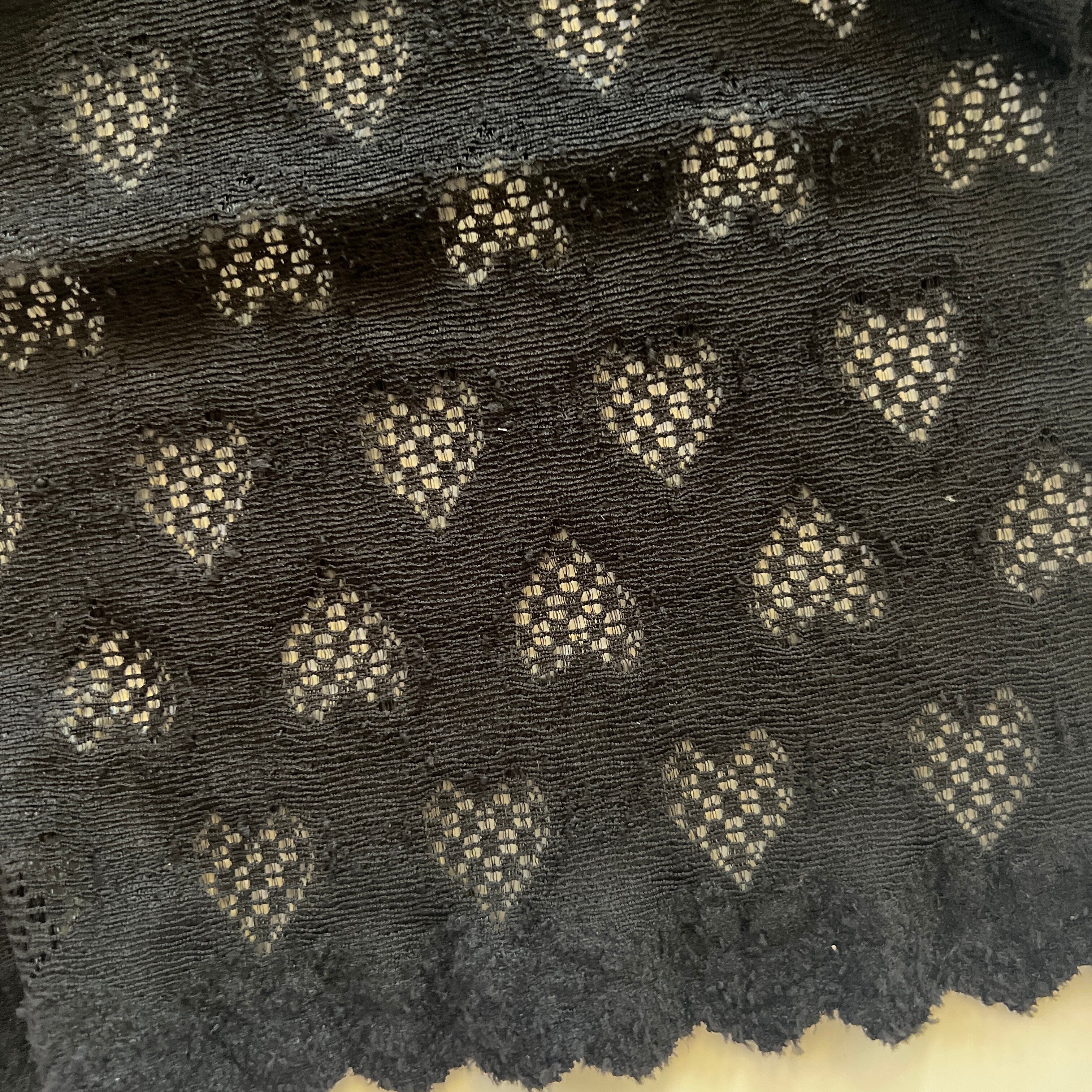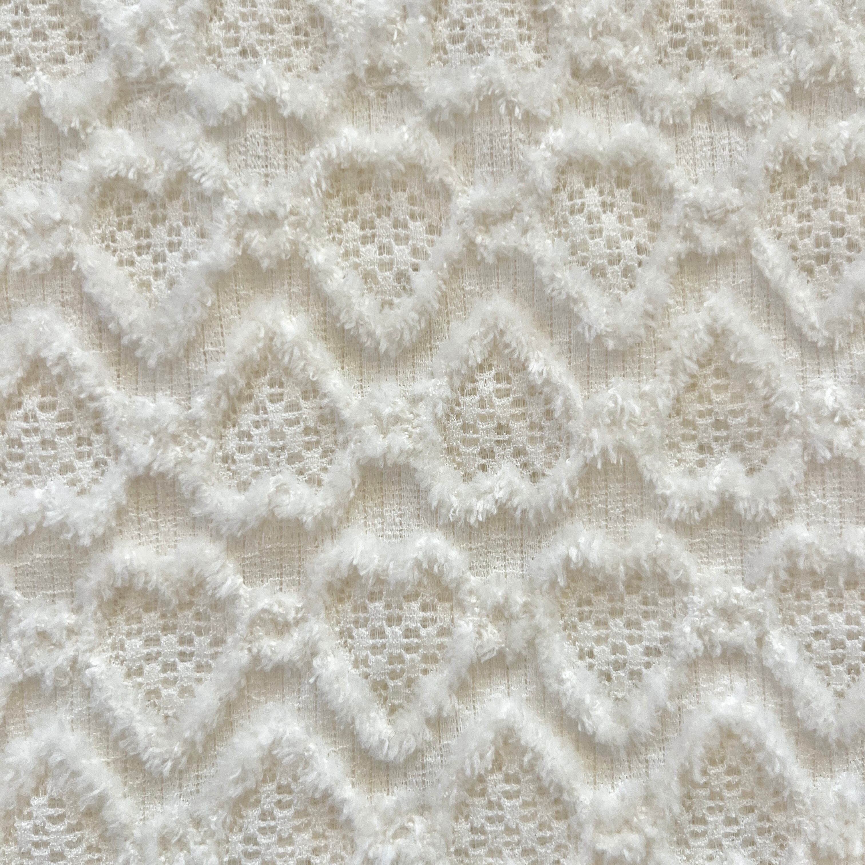 伸縮性のあるニット生地にふわふわ柔らかい伸縮性のある毛糸でハートフリンジを縫い込んだニット生地です。