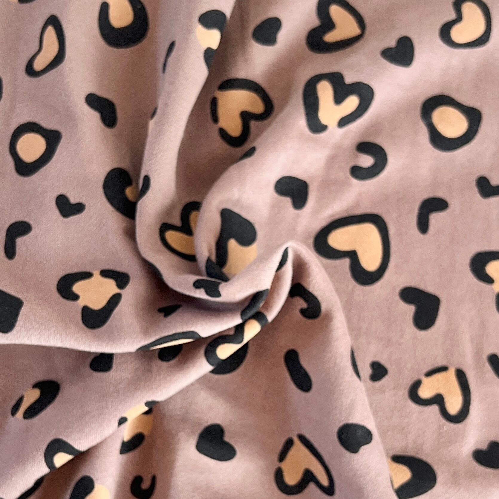 裏起毛ニット生地(ハートのレオパード・モカ)韓国生地