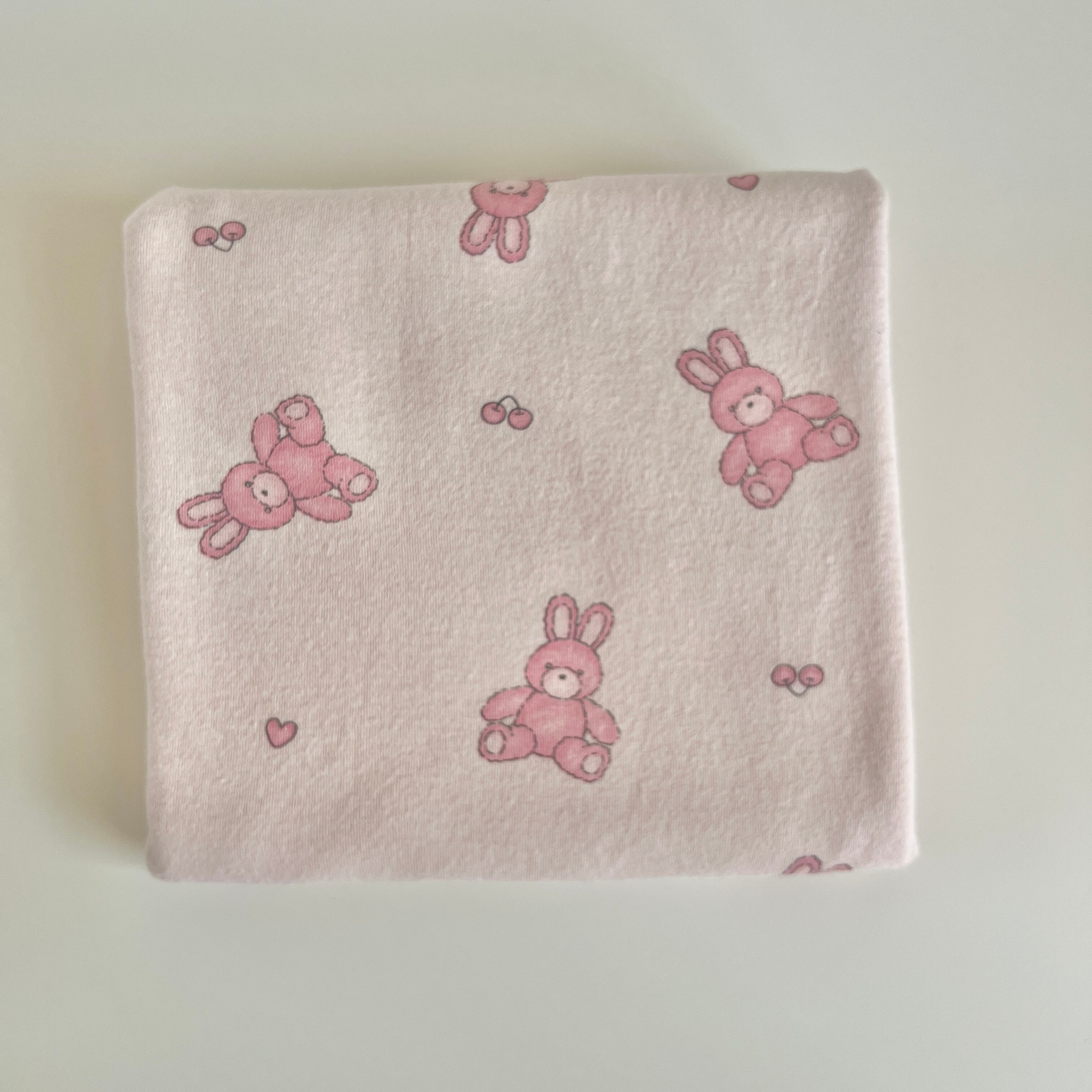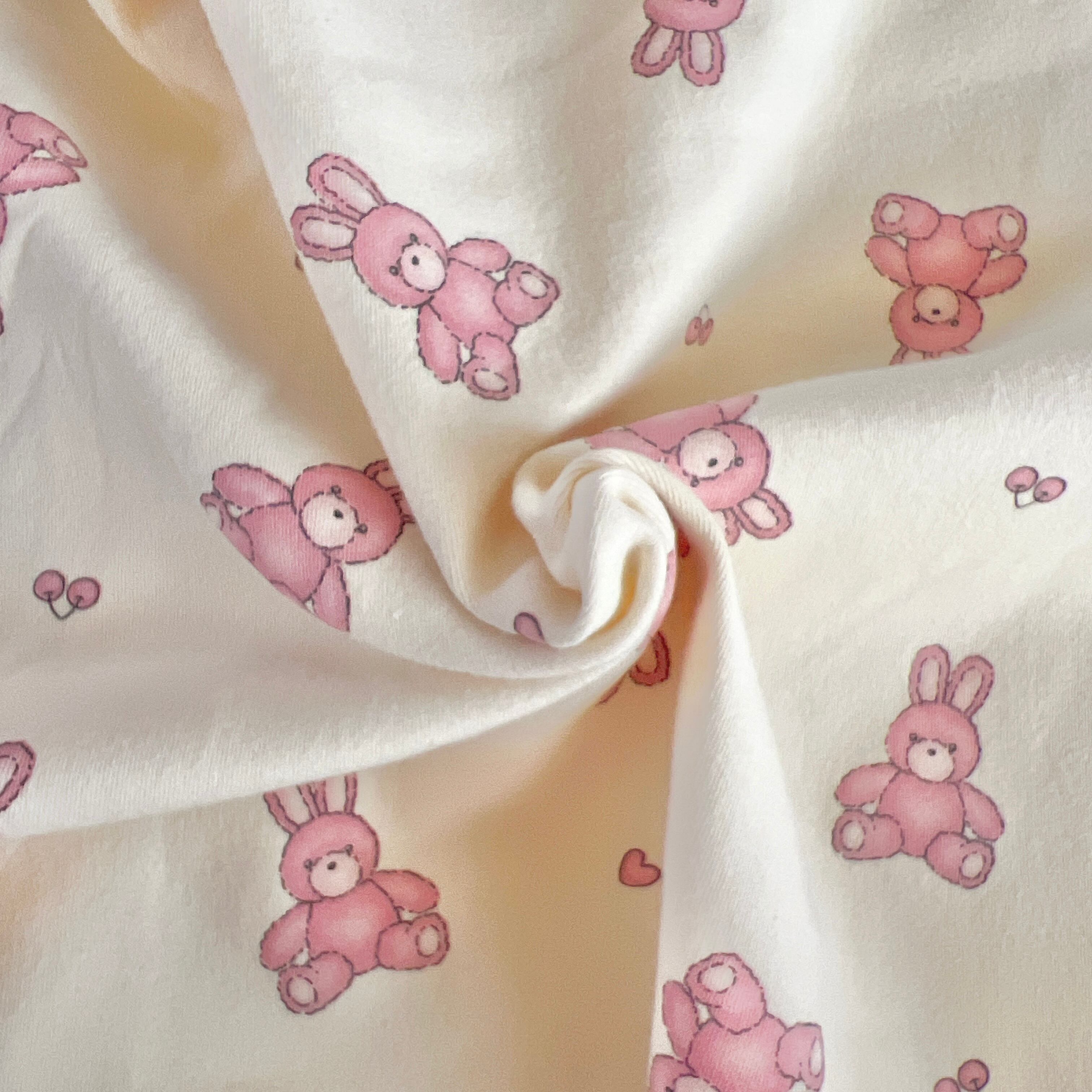 30フライスニット生地ピーチ起毛( rabbit &cherry heart)韓国生地 2色から選択
