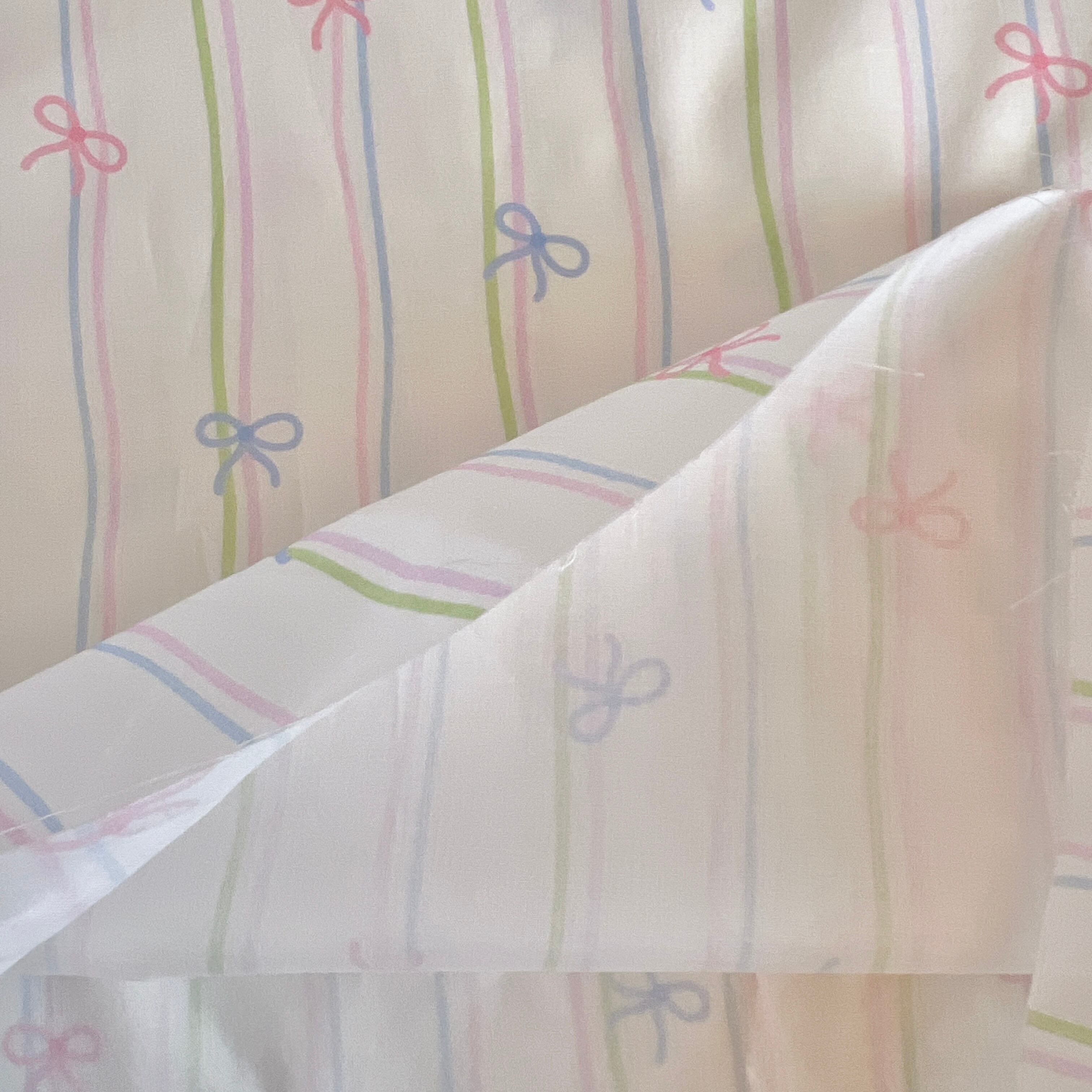 60数cotton生地(ダブルストライプ×リボン柄)