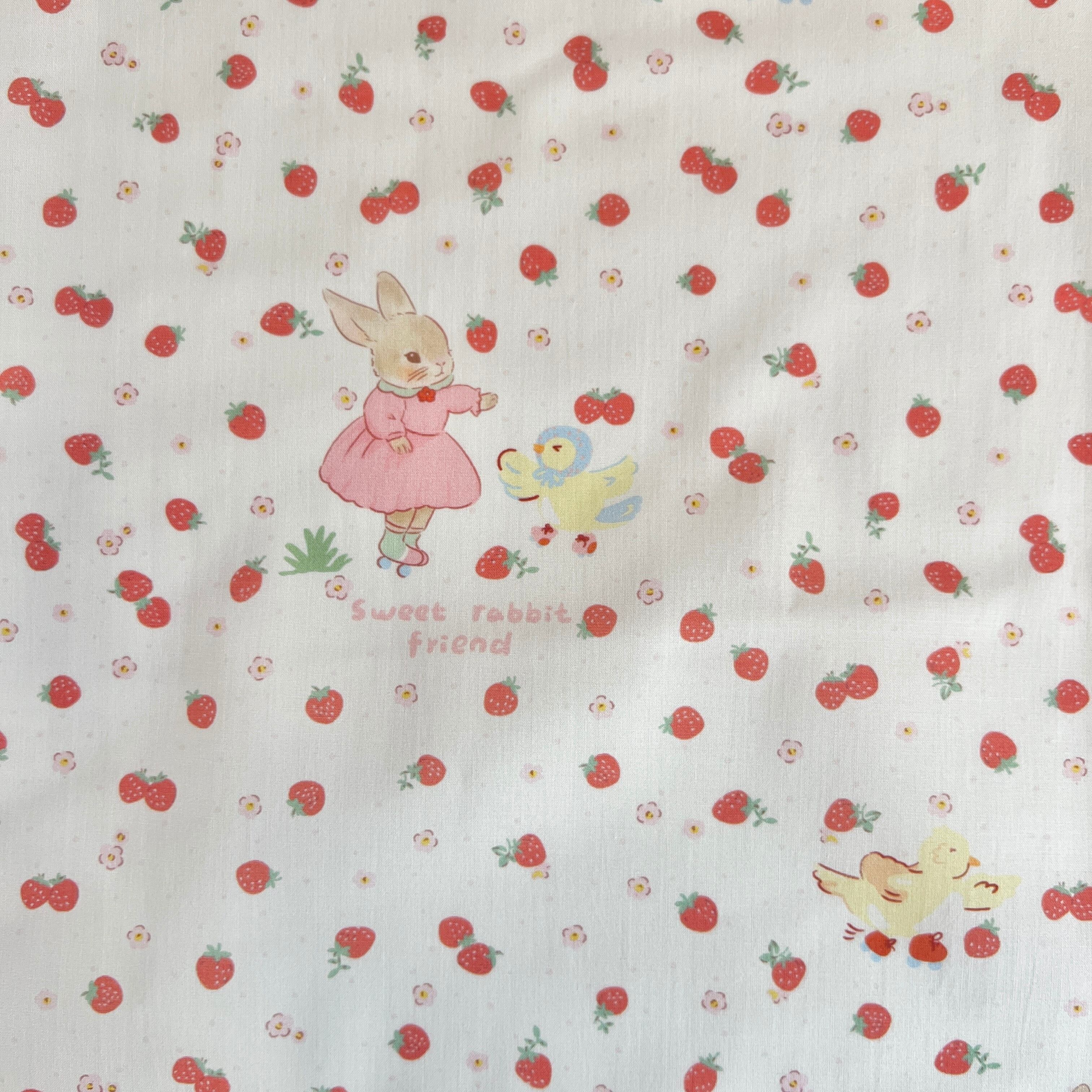 60数cotton生地(いちご畑の中のうさぎとアヒル)