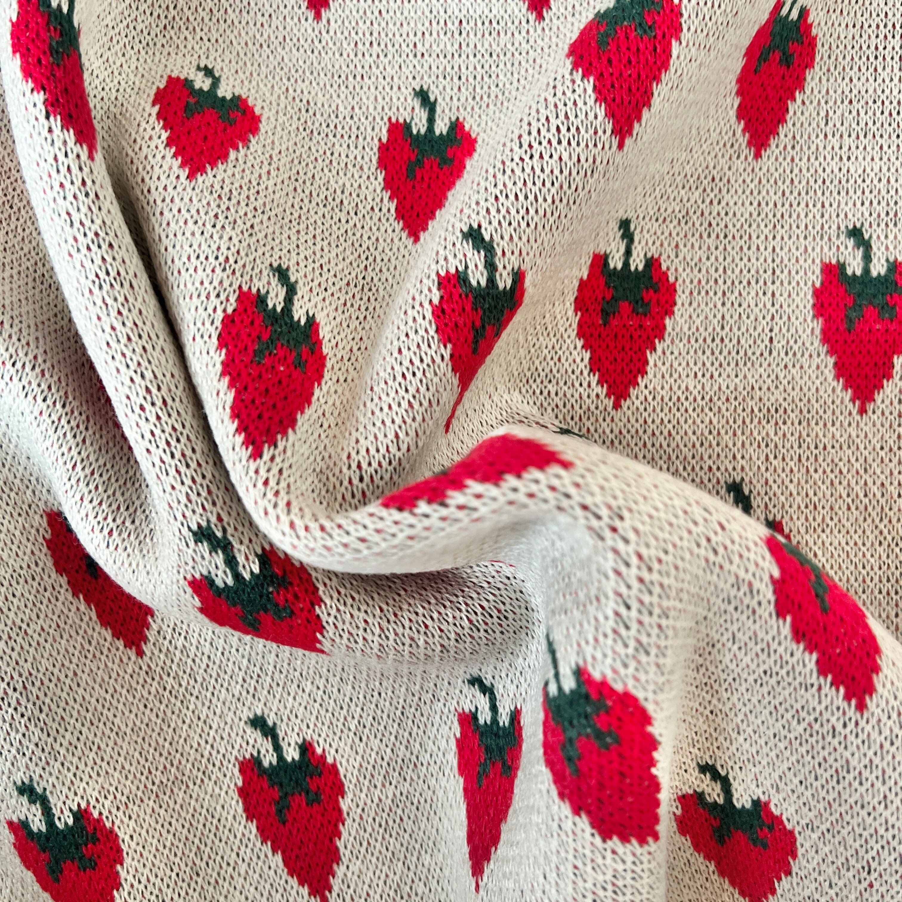 ジャガードニット生地(ハートのいちご柄) 韓国生地