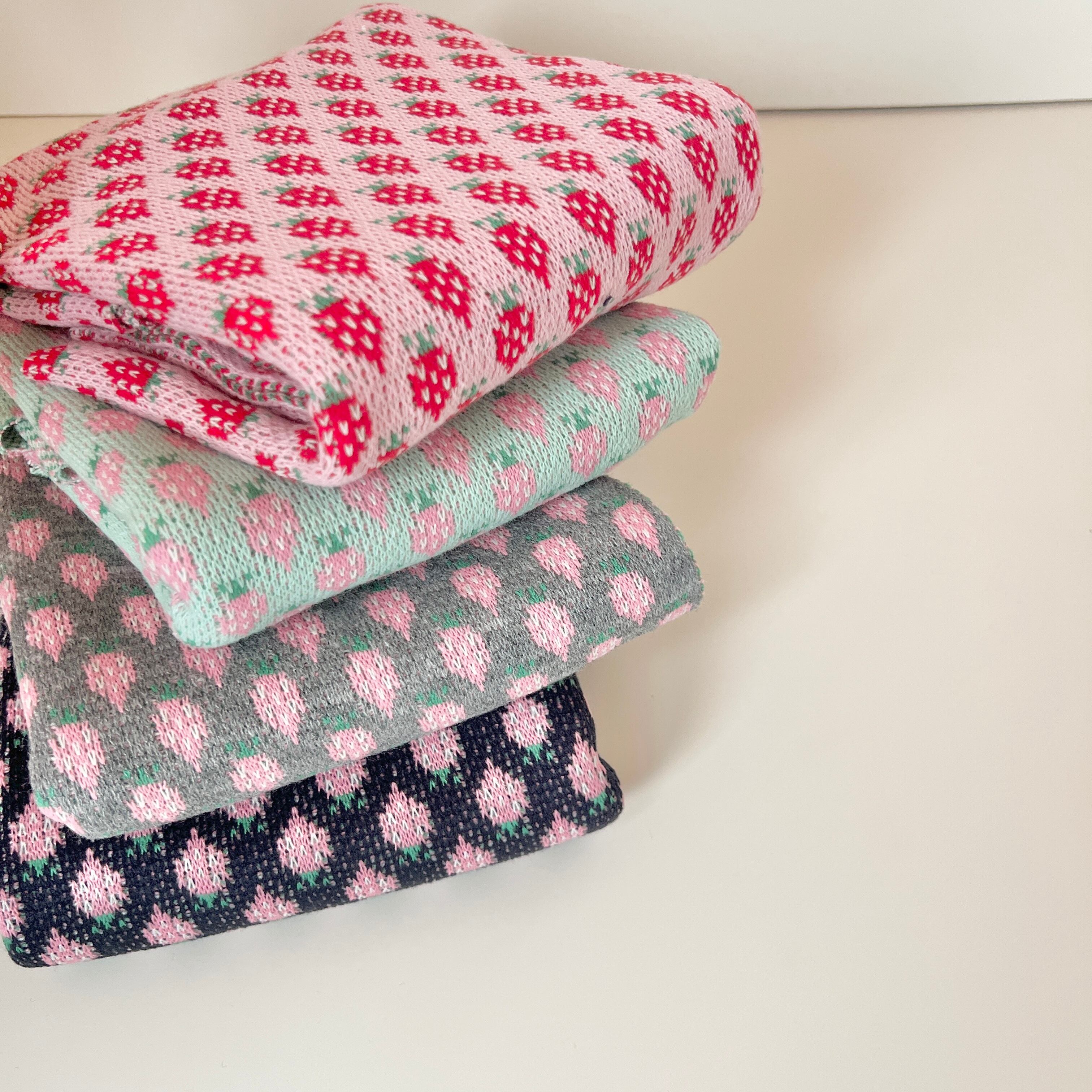 ジャガードニット生地(小粒のいちご) 韓国生地
