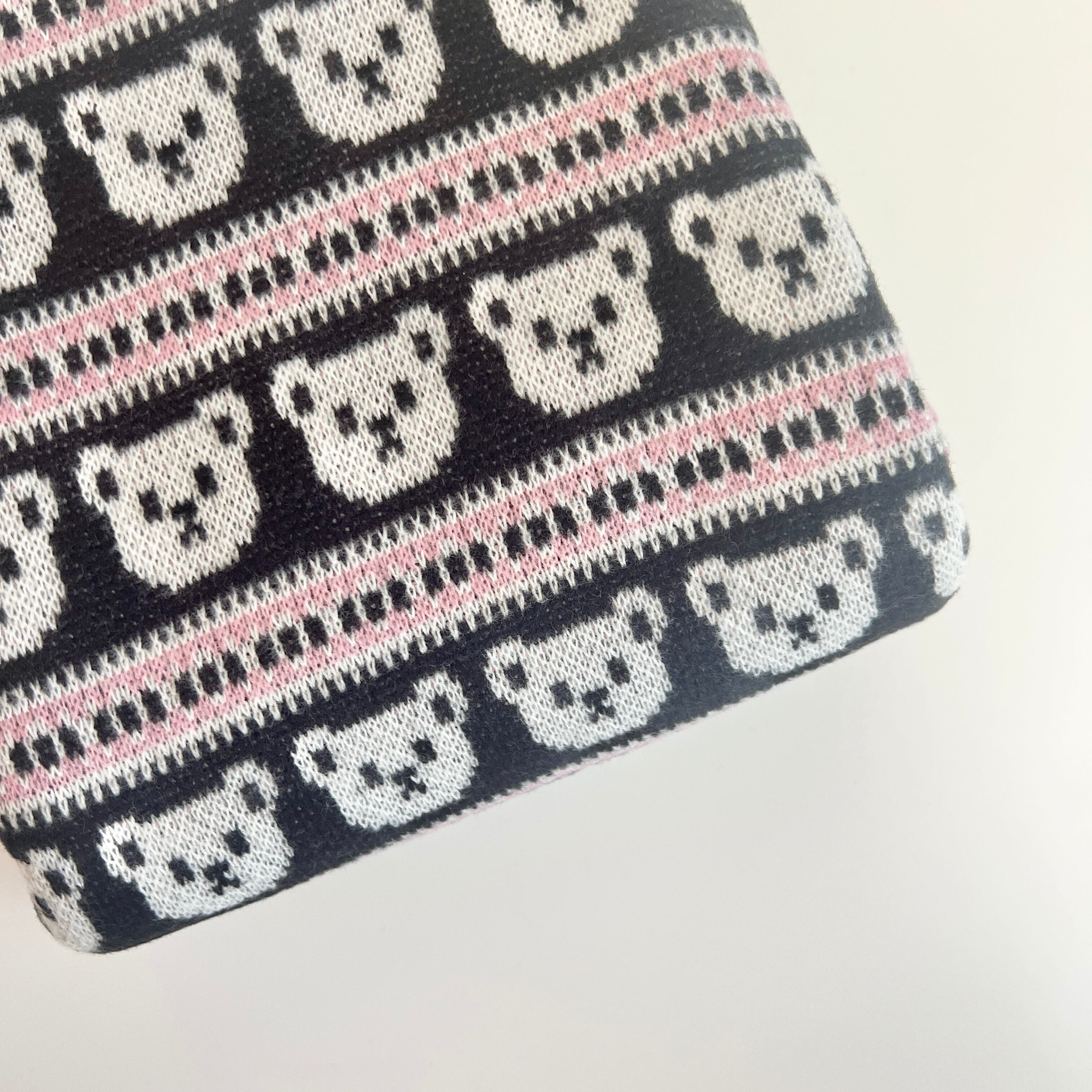 ジャガードニット生地(裏起毛・フェアアイル柄・くま) 韓国生地