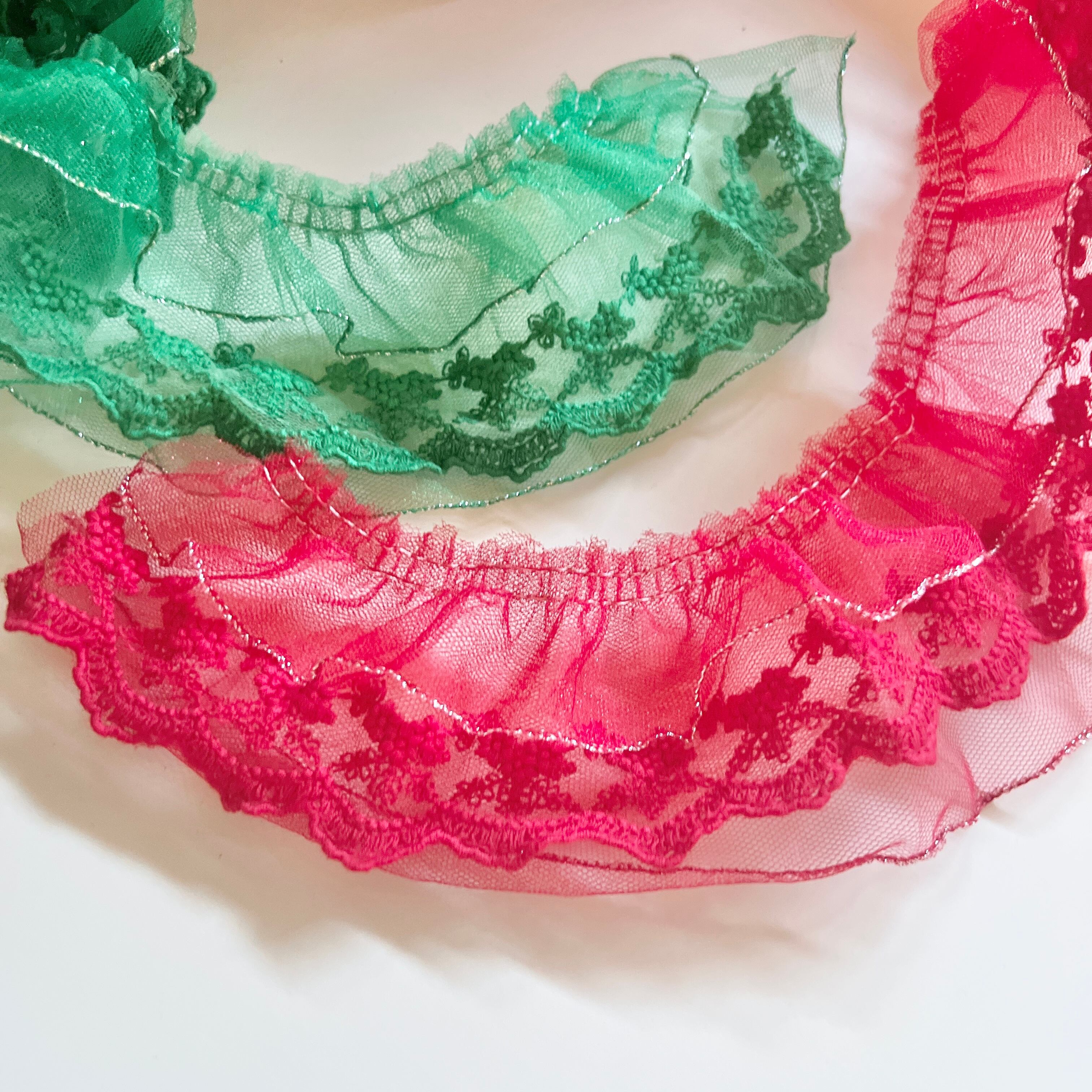 ※3yd以上のフリルリボンのご購入について、仕入れ時から繋ぎ目が縫い合わさっていたり、その箇所を色付きテープで分かりやすく止めていたりする場合がございます。長くご購入の場合この箇所は避けられない状況となり、この場合での不良品のための交換は致しかねます。