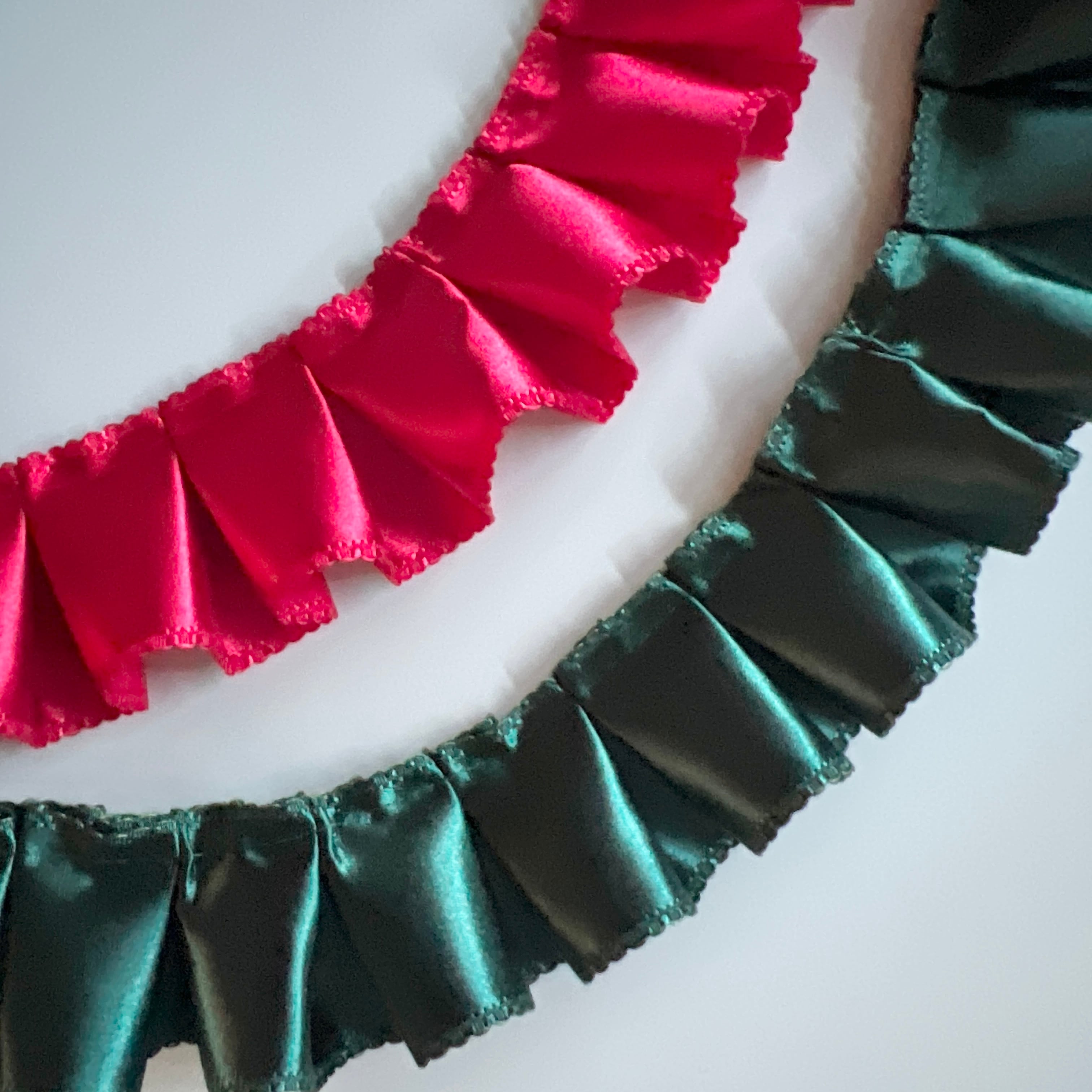 ※3yd以上のフリルリボンのご購入について、仕入れ時から繋ぎ目が縫い合わさっていたり、その箇所を色付きテープで分かりやすく止めていたりする場合がございます。長くご購入の場合この箇所は避けられない状況となり、この場合での不良品のための交換は致しかねます。