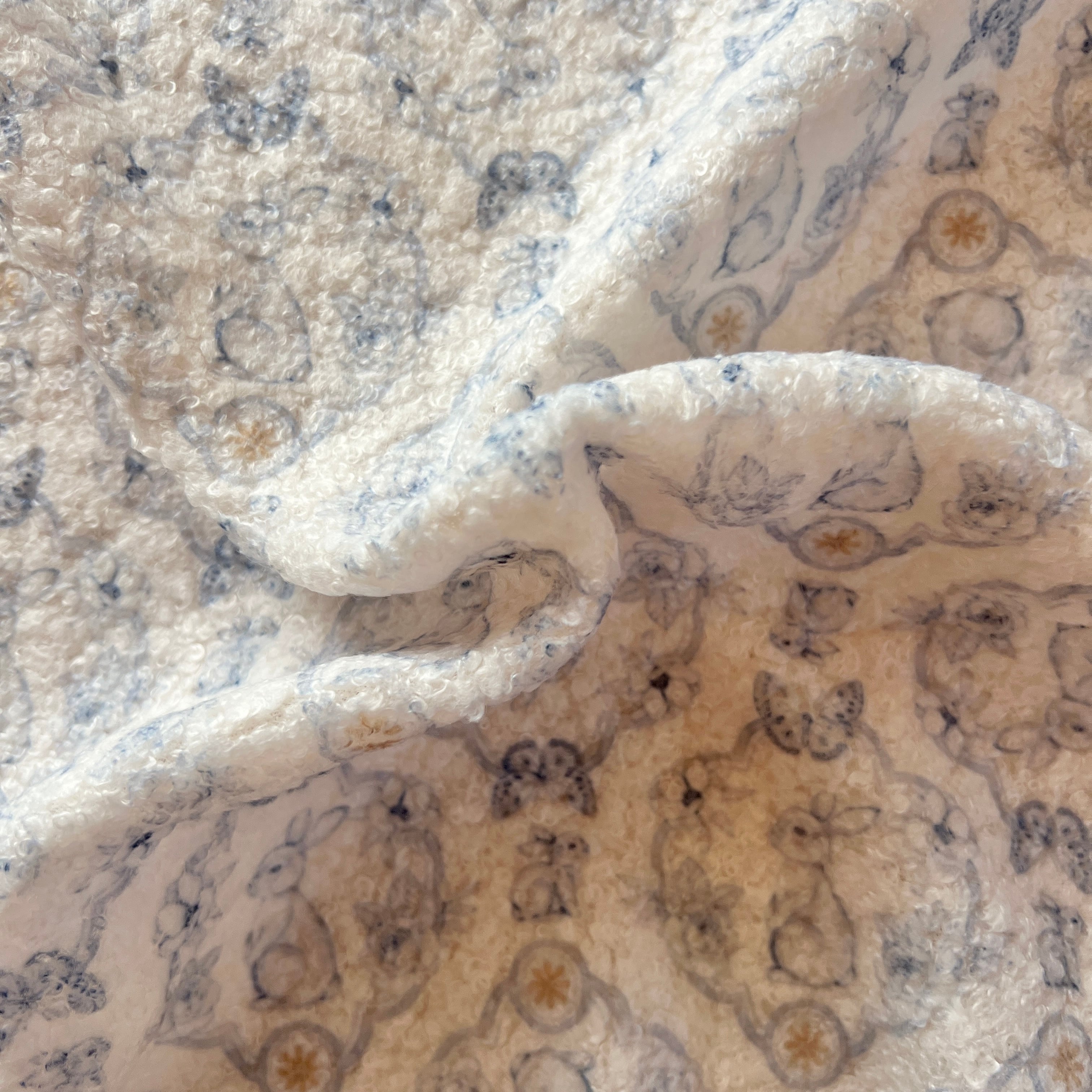 横方向に伸縮性のあるクルクルのパイルニット生地です。