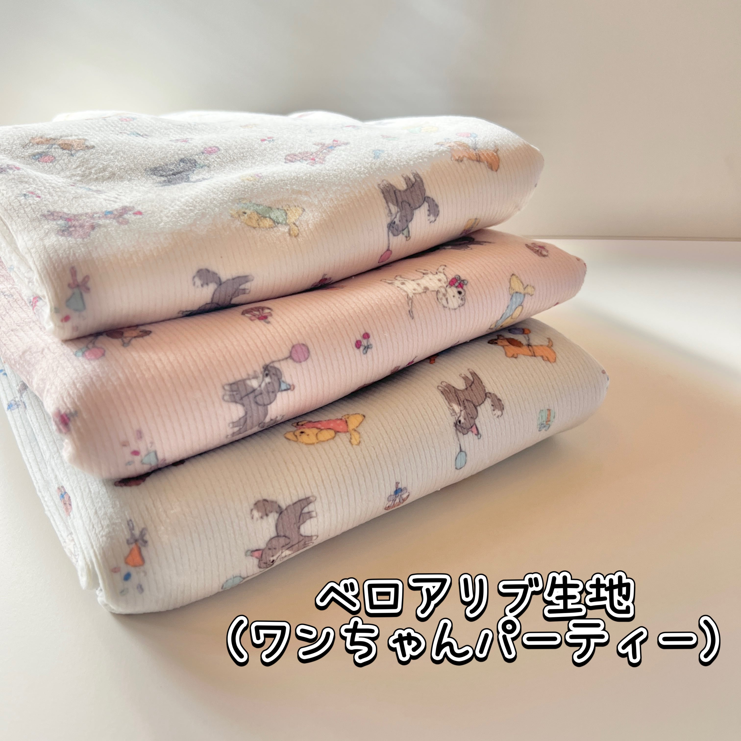 ベロアリブ生地(ワンちゃんパーティー) 韓国生地 3カラーから選択