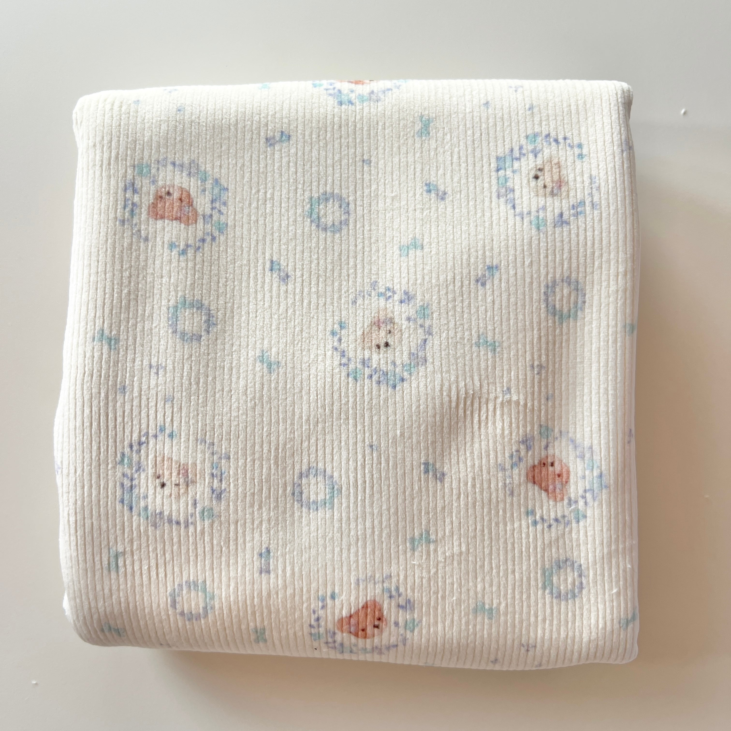 ベロアリブ生地(circle flower bear) 韓国生地 3カラーから選択