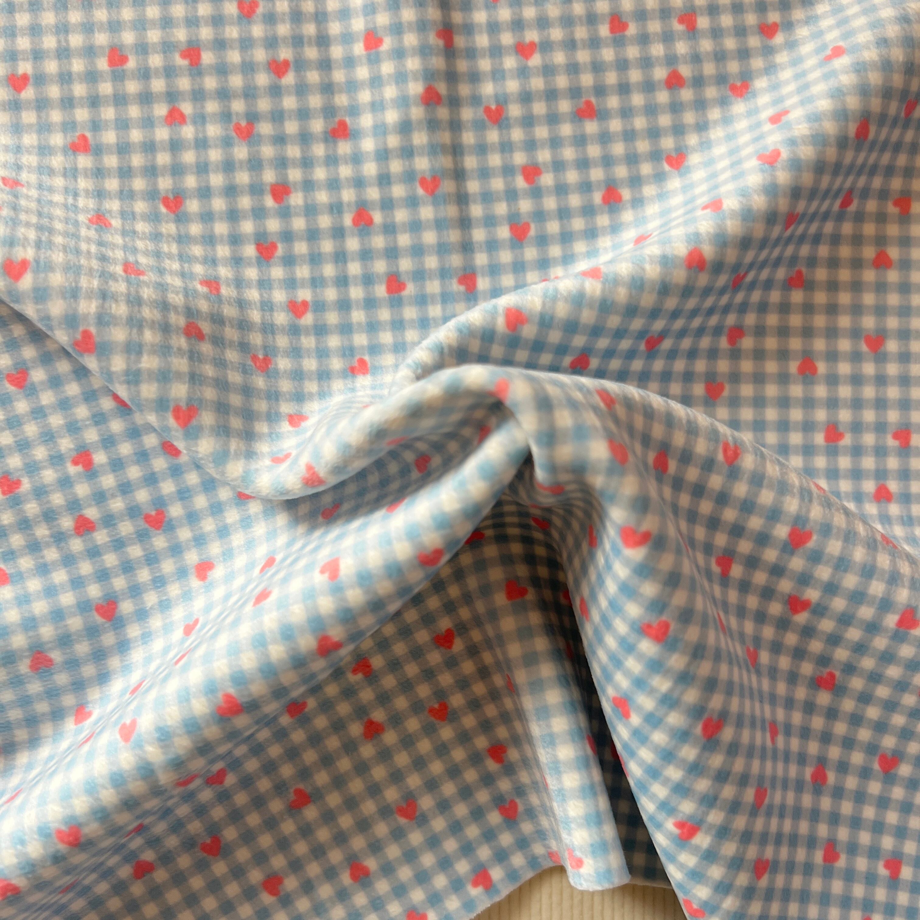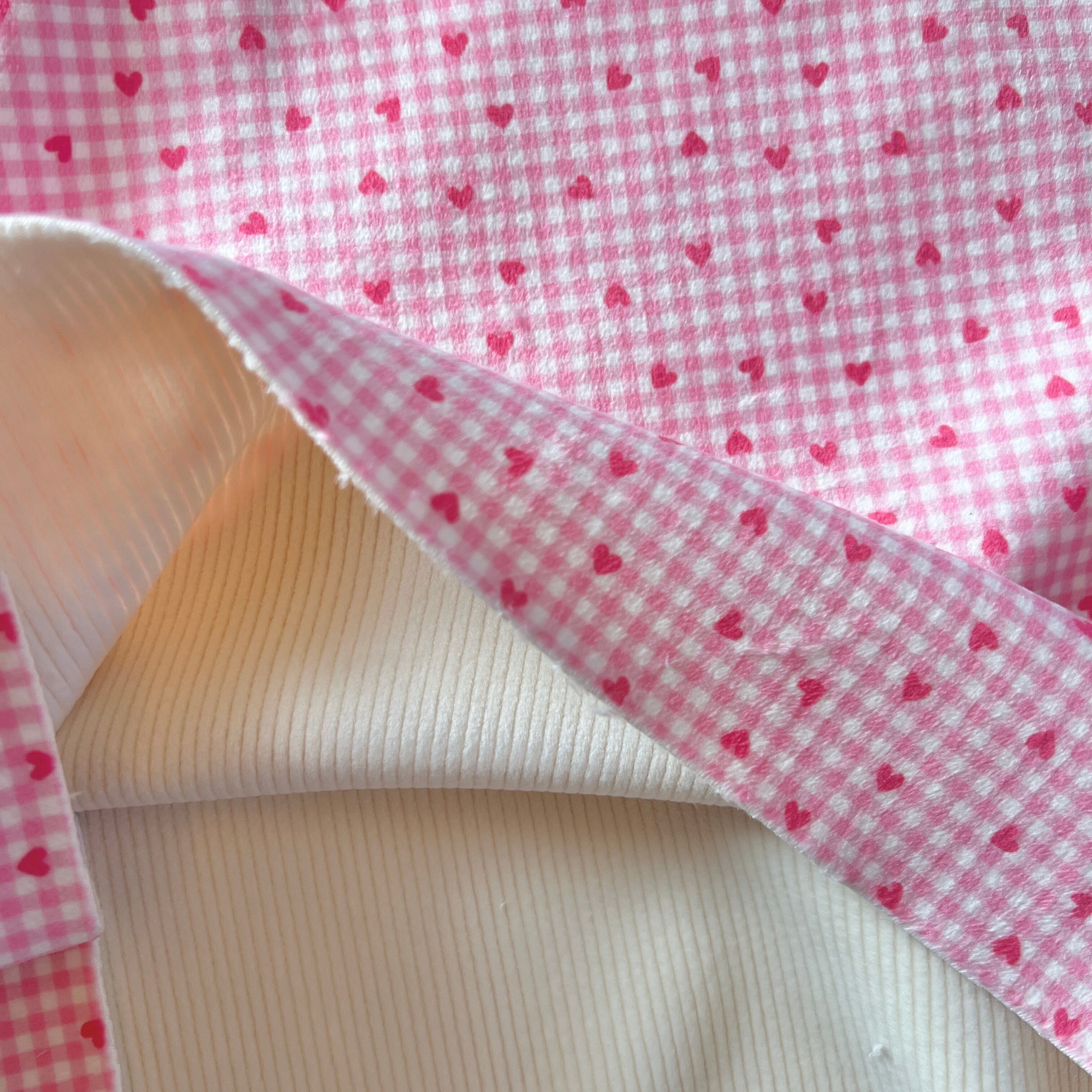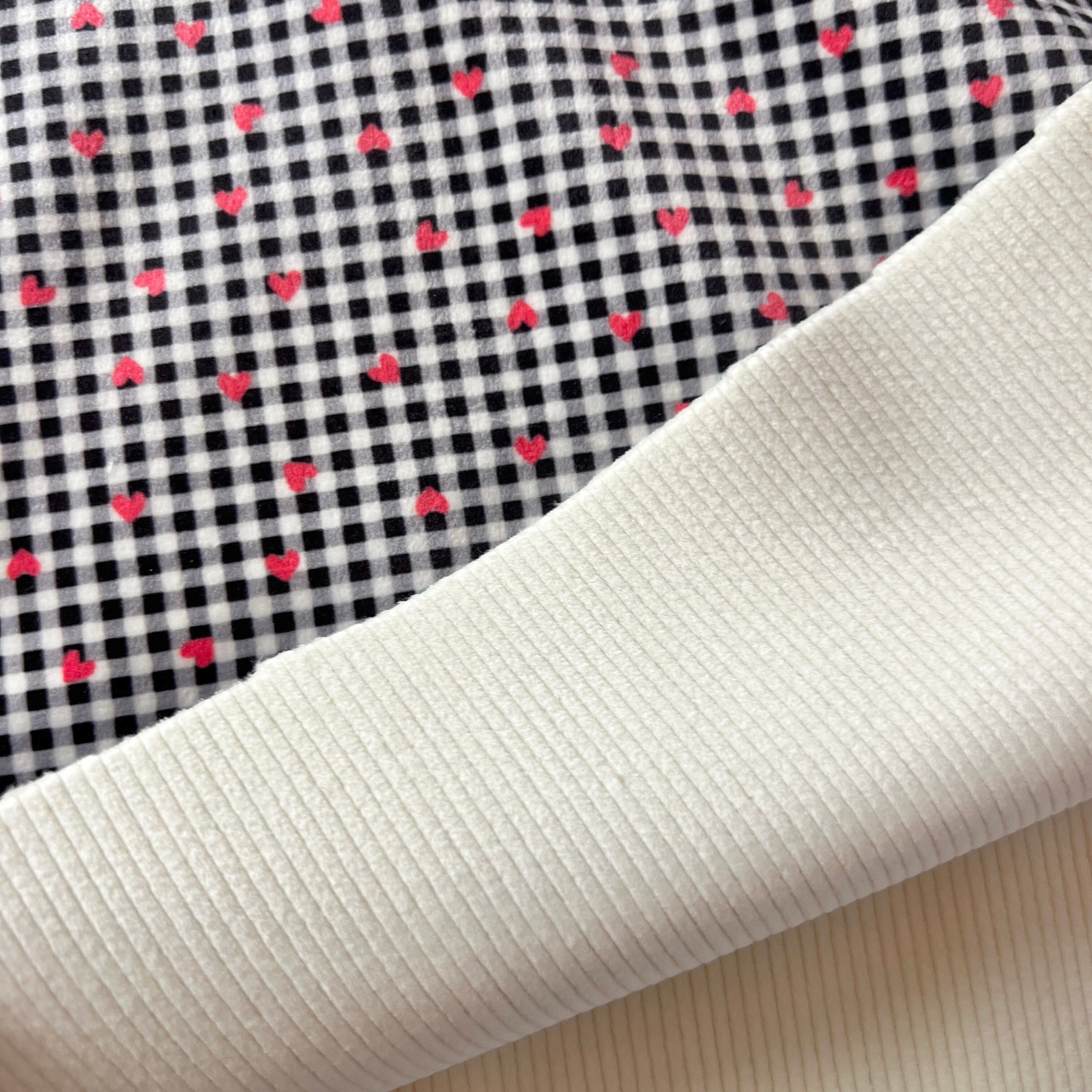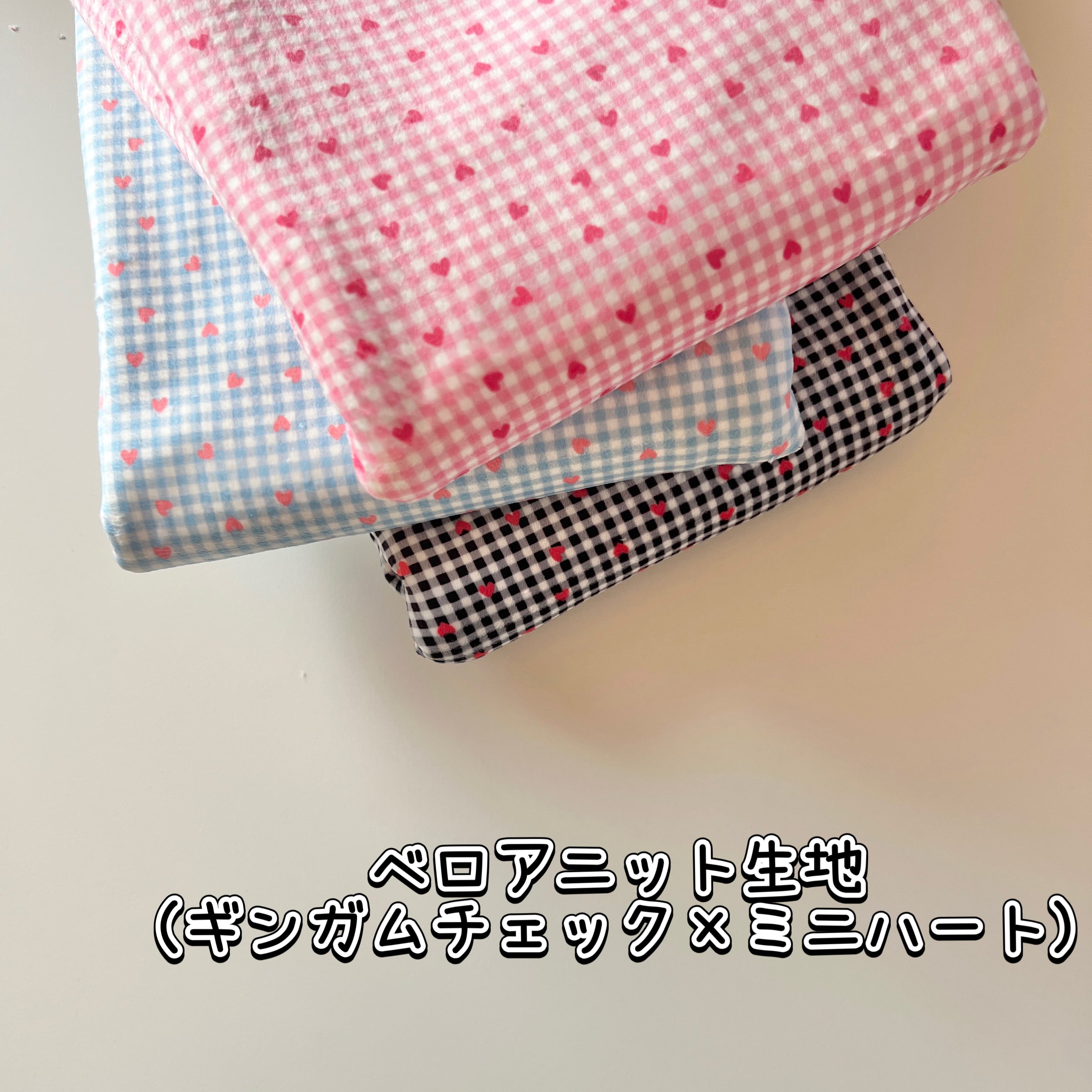 ベロアニット生地(ギンガムチェック×ミニハート)韓国生地 3カラーから選択