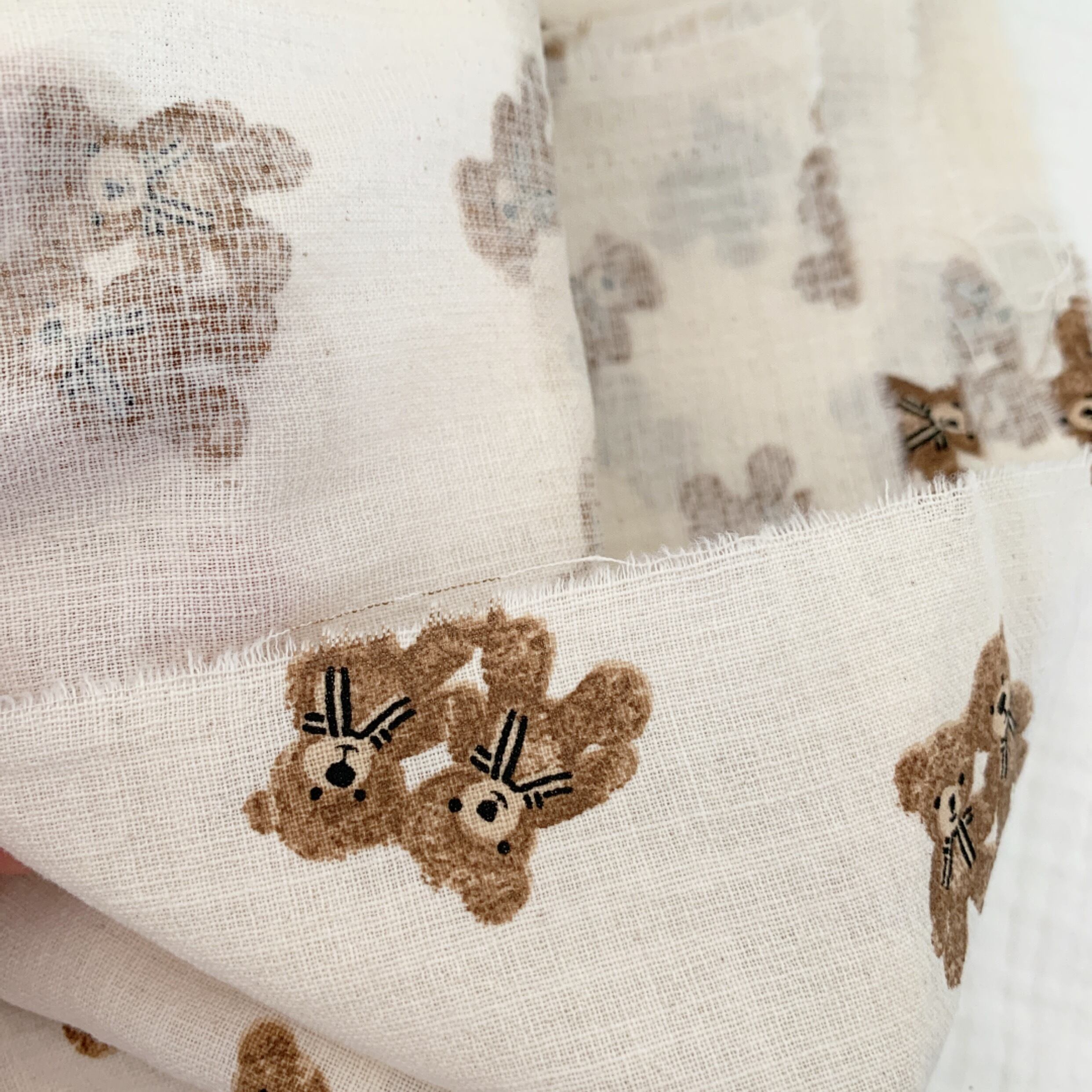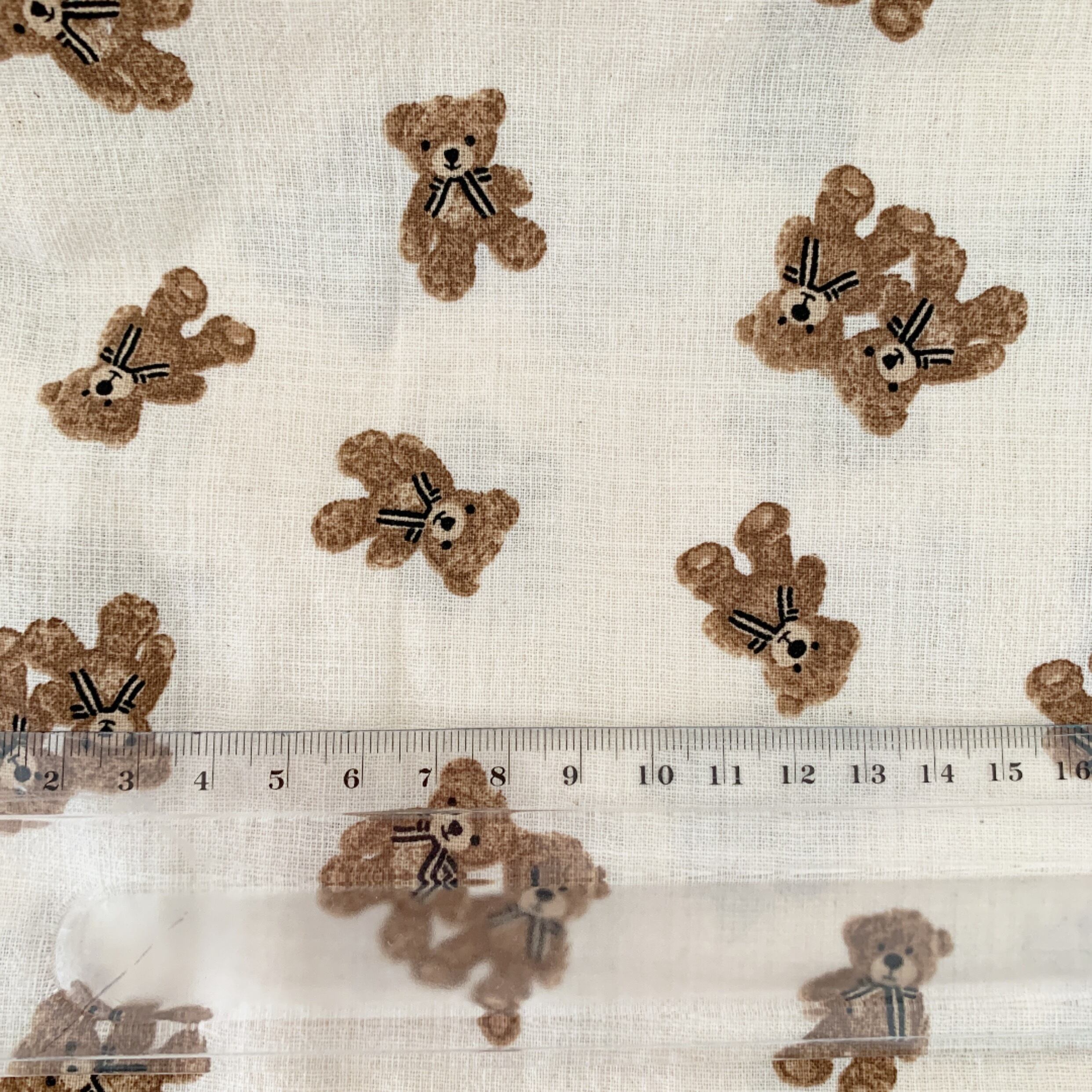 韓国から直接仕入れたくまちゃんがリボンをしている可愛い柄のコットン生地です。