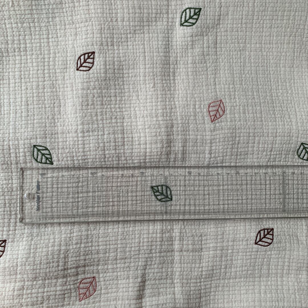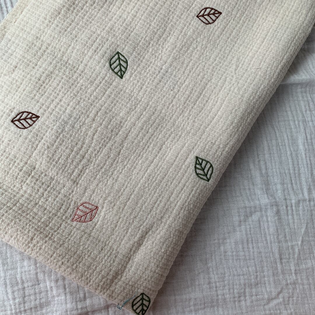 韓国から直接仕入れた数種類の色とりどりの葉っぱ刺繍が施されたトリプルガーゼ(アイボリー)です♪