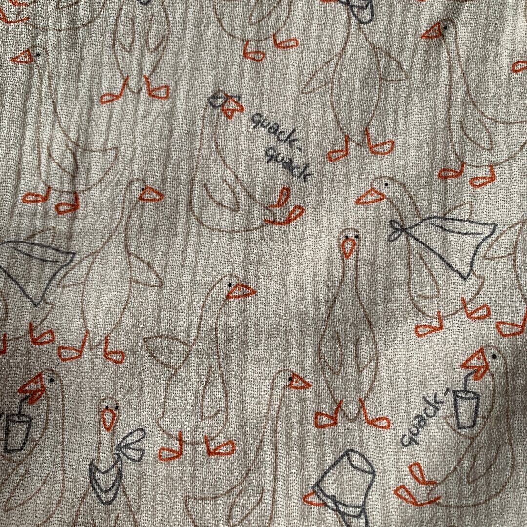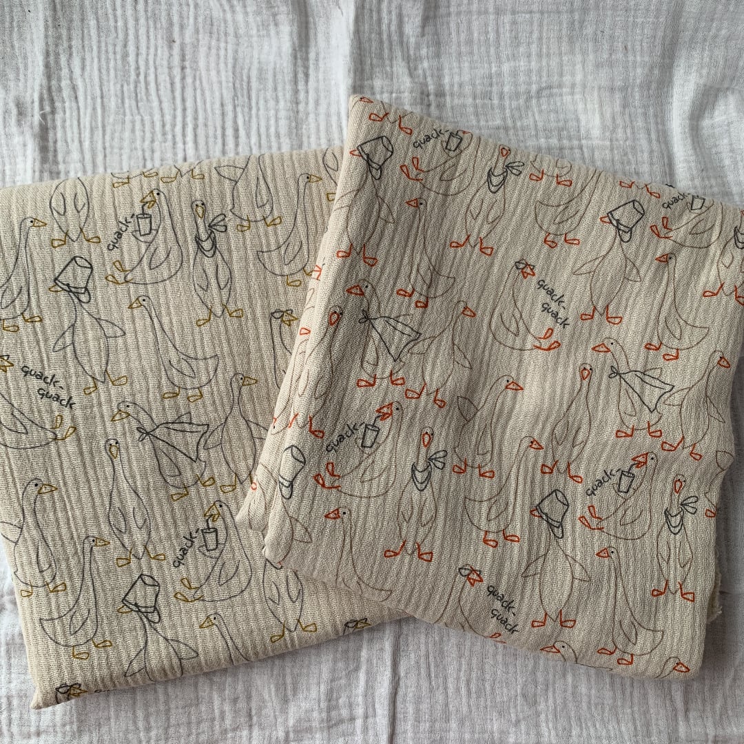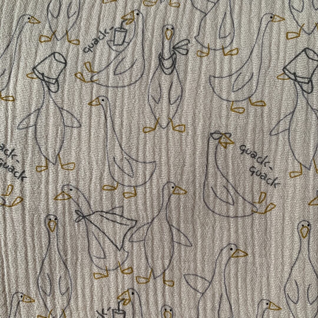 韓国から直接仕入れた沢山のアヒルの表情が入ったベージュのダブルガーゼです。アヒル好きにはたまらない一品です♡