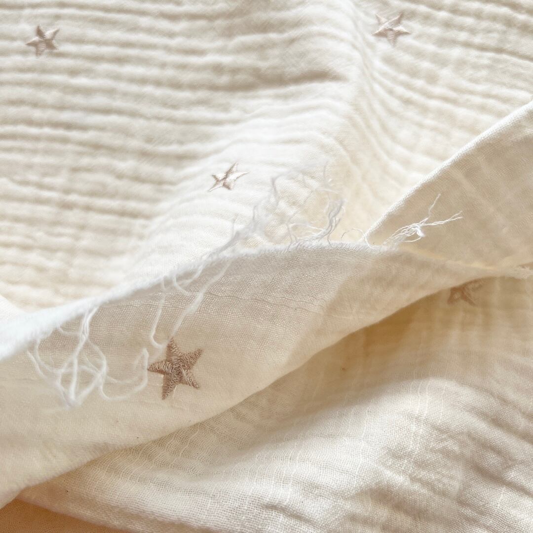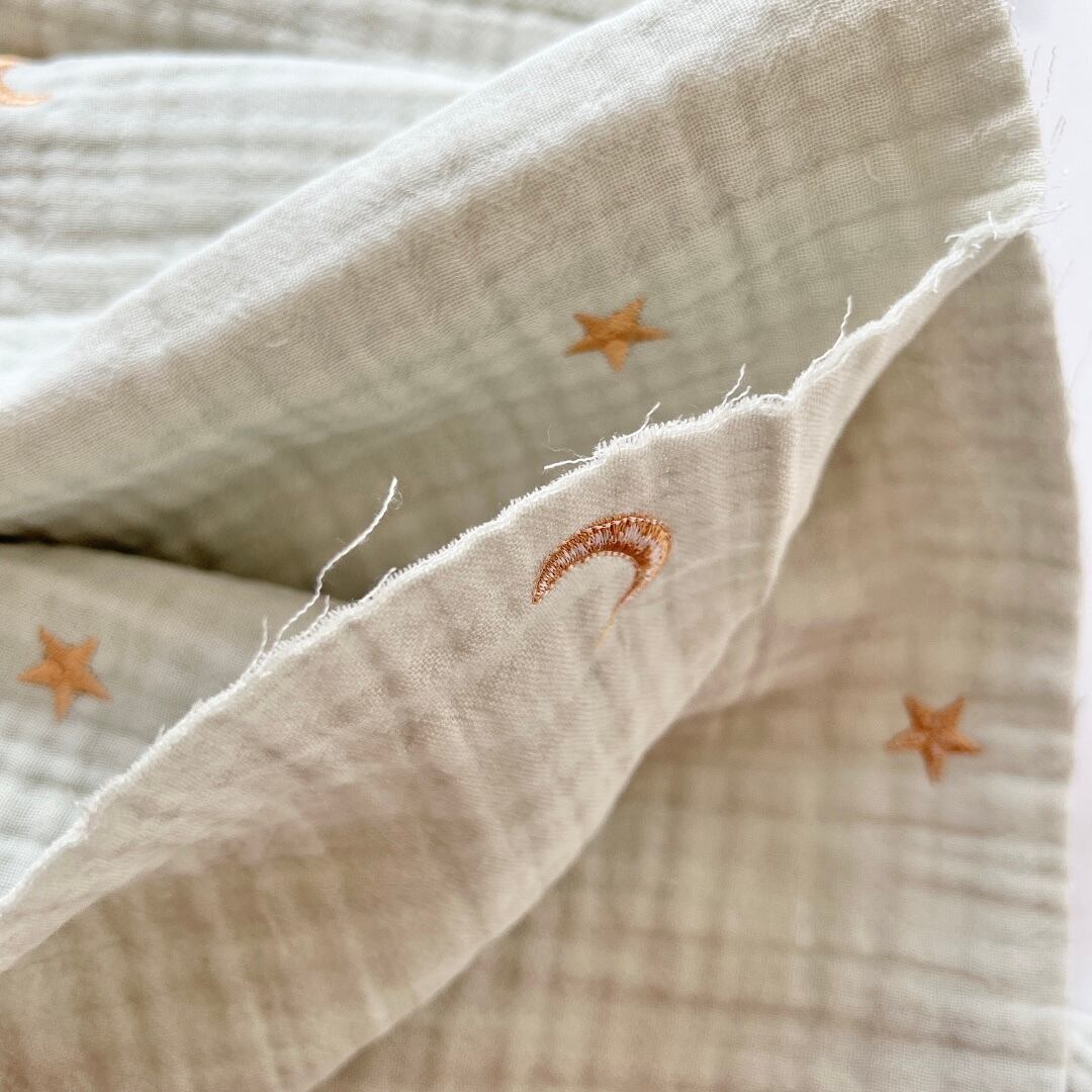 大人気、月と星の刺繍が入ったふわふわトリプルガーゼの韓国生地です♪