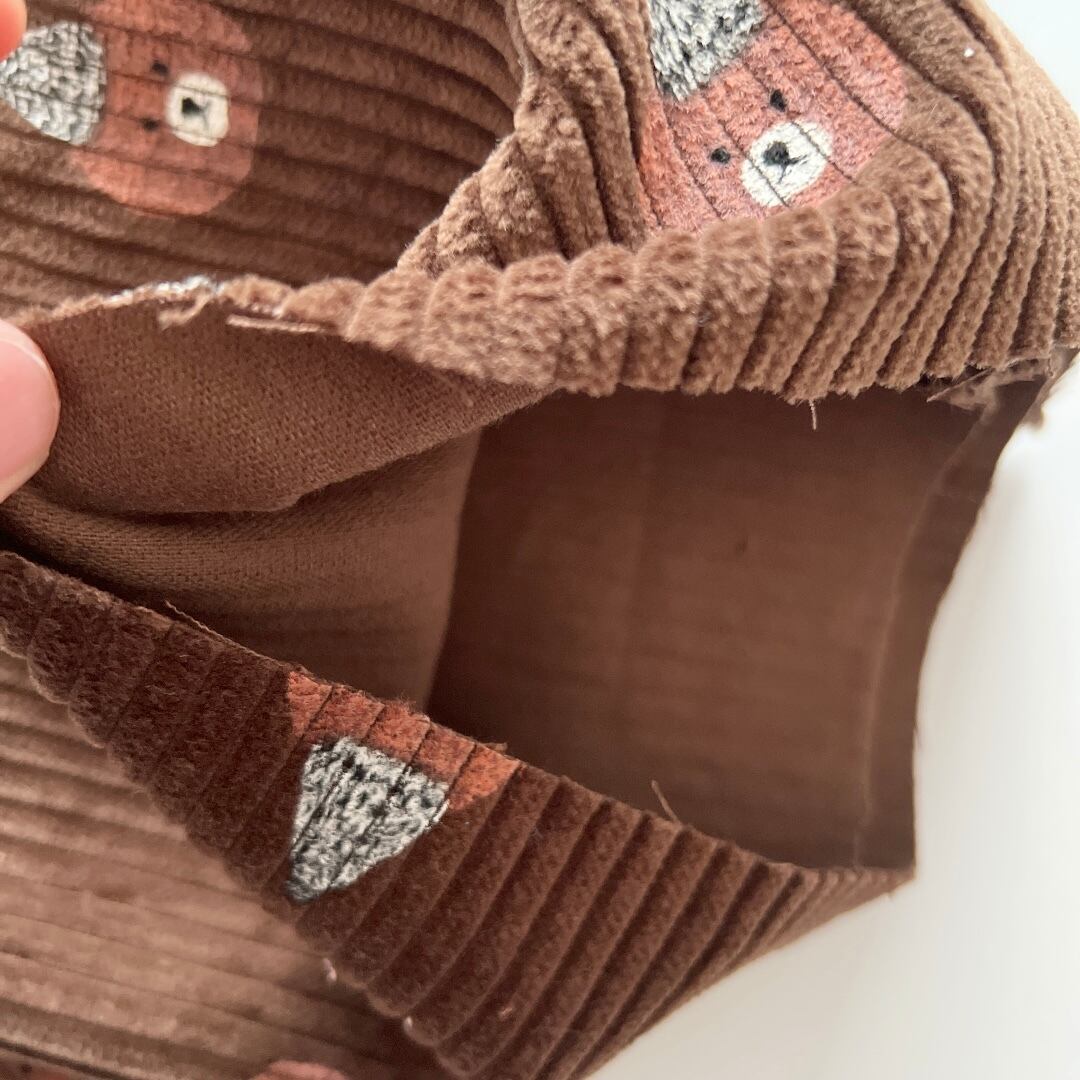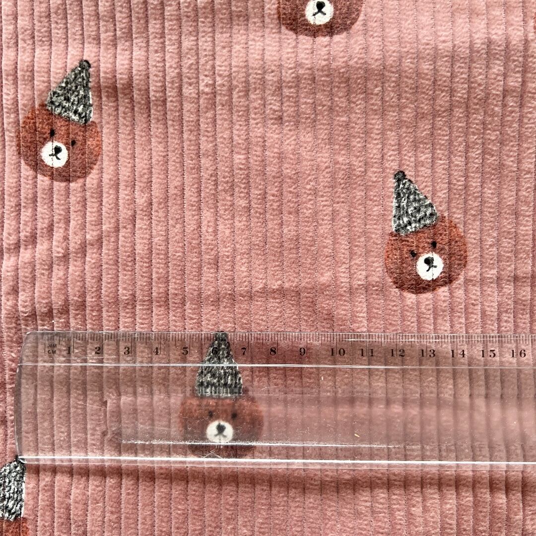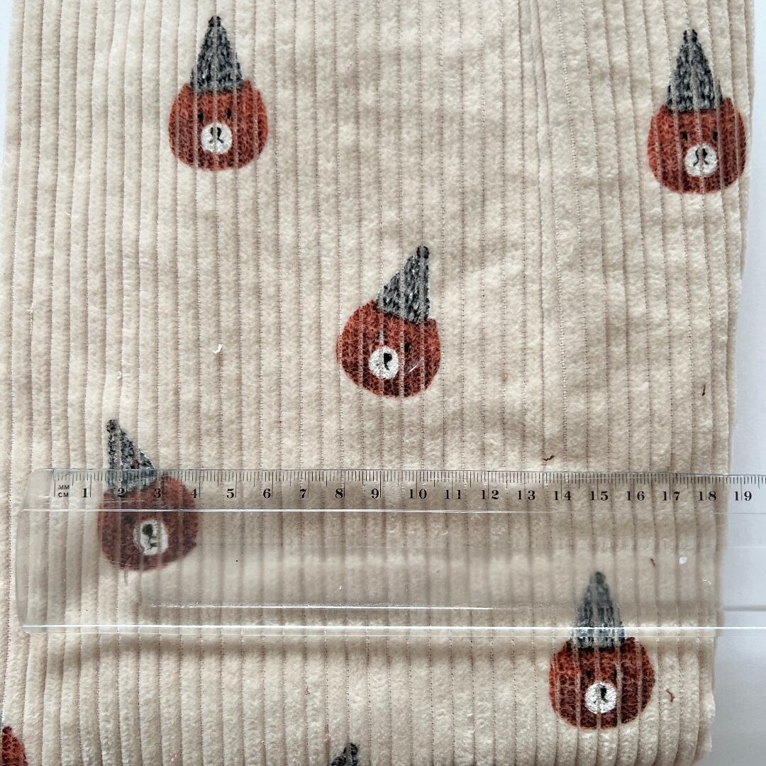 韓国から直接仕入れた三角帽子くまさんのコーデュロイ生地です。
