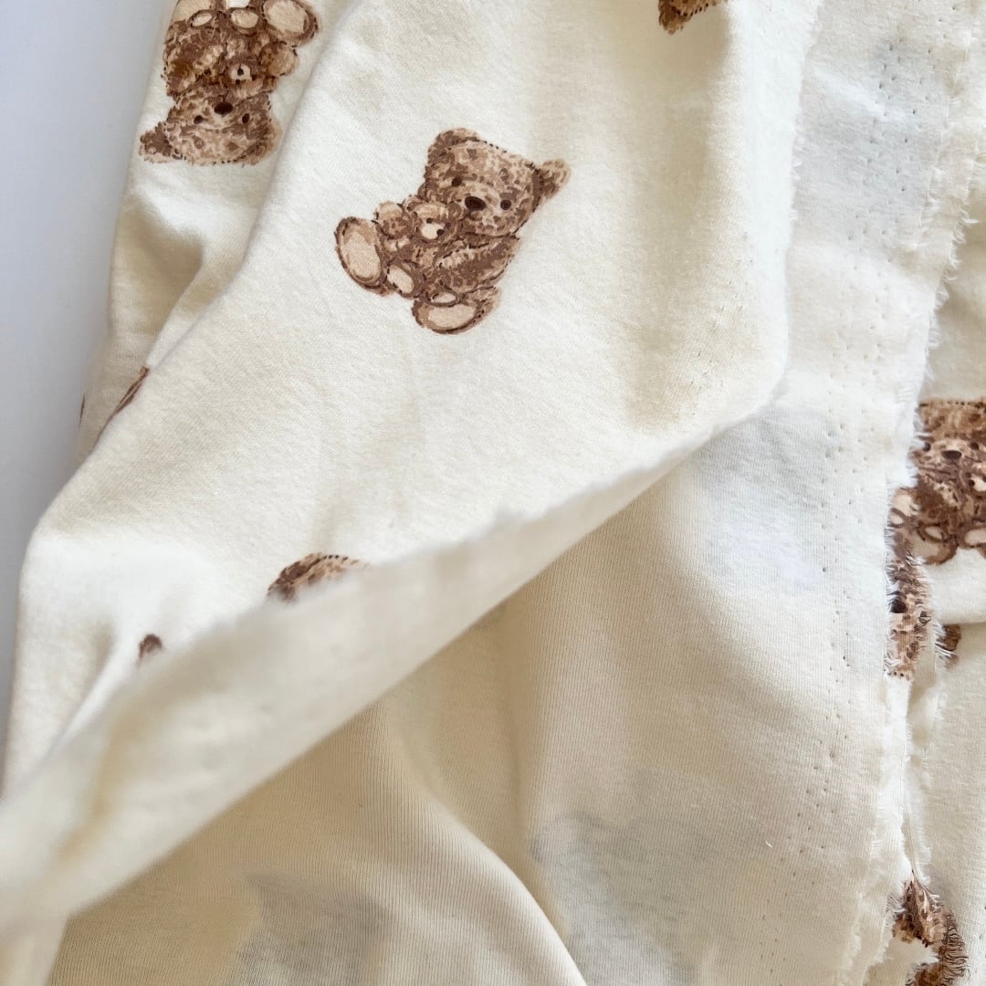 こちらは、韓国生地ツインクマを描いた作家さんと同じ作家さんの作品で、親子クマのイラストがとっても可愛く癒されます。
