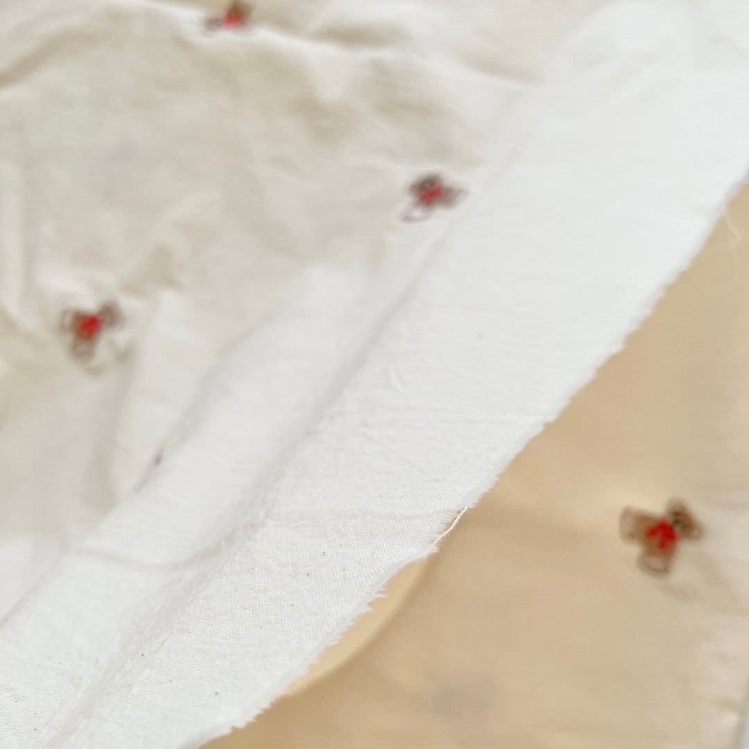 original生地 cotton生地(赤いリボンの刺繍クマ)韓国生地