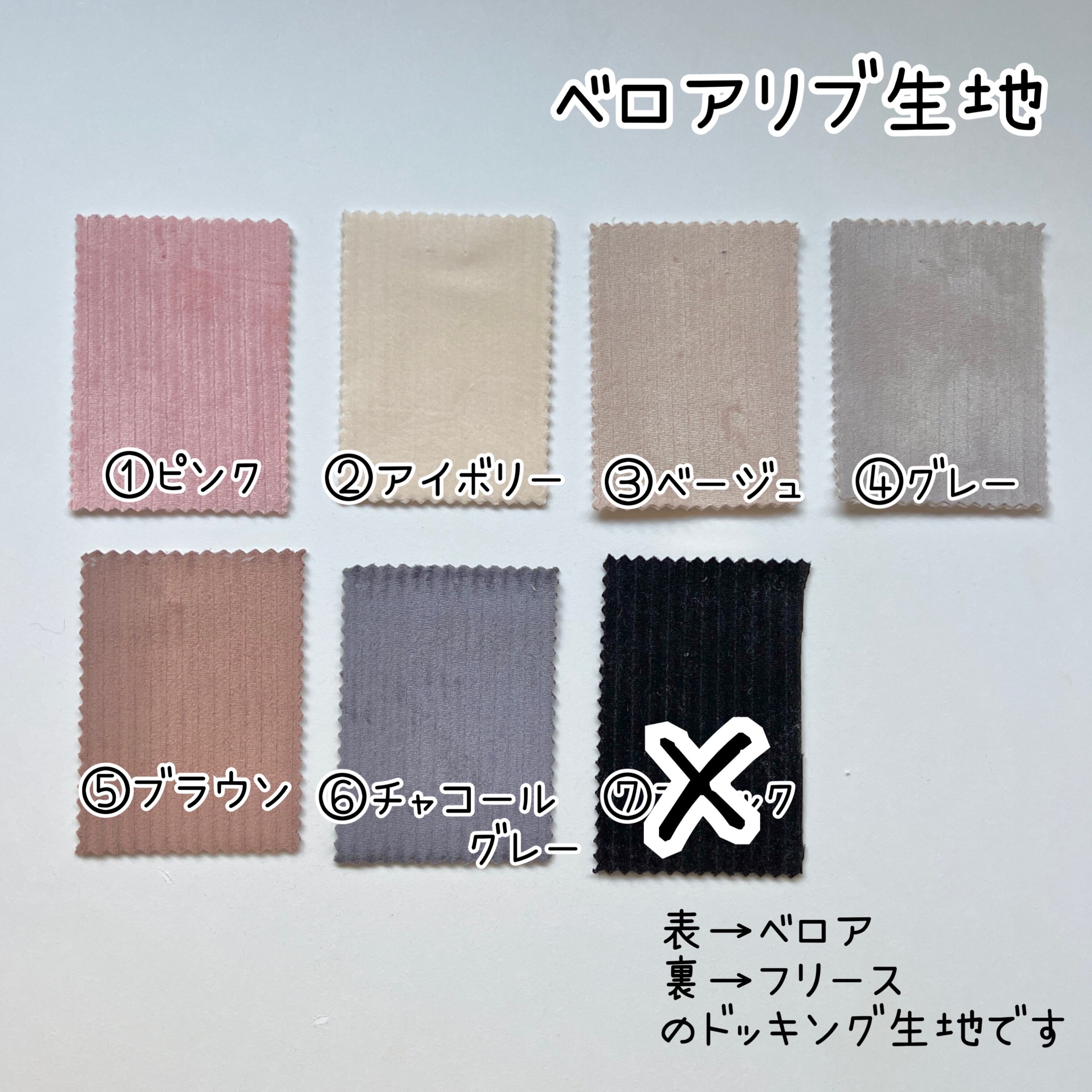ベロアリブ生地 7色選択 韓国生地