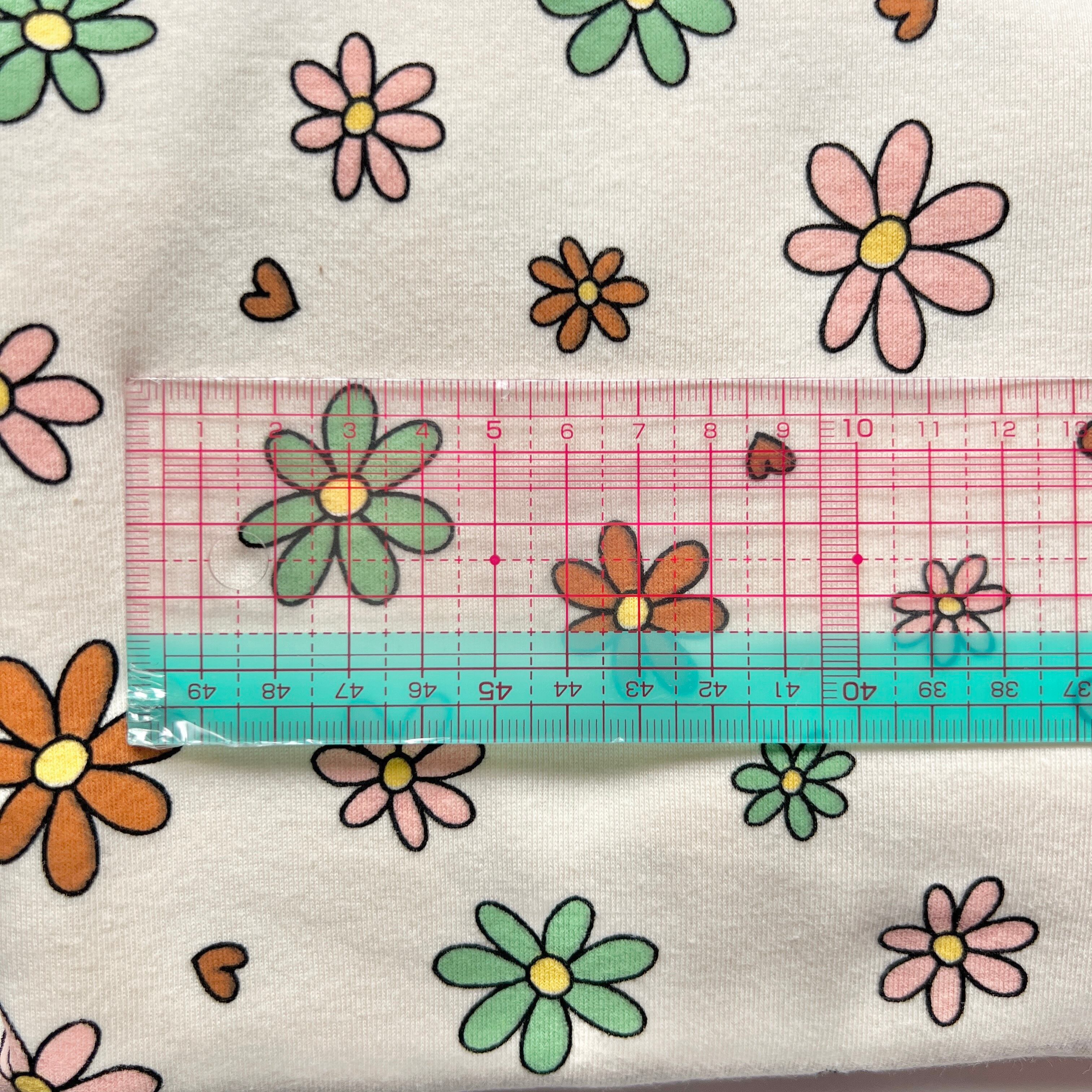 40フライスニット生地(フラワー・レトロカラー)韓国生地