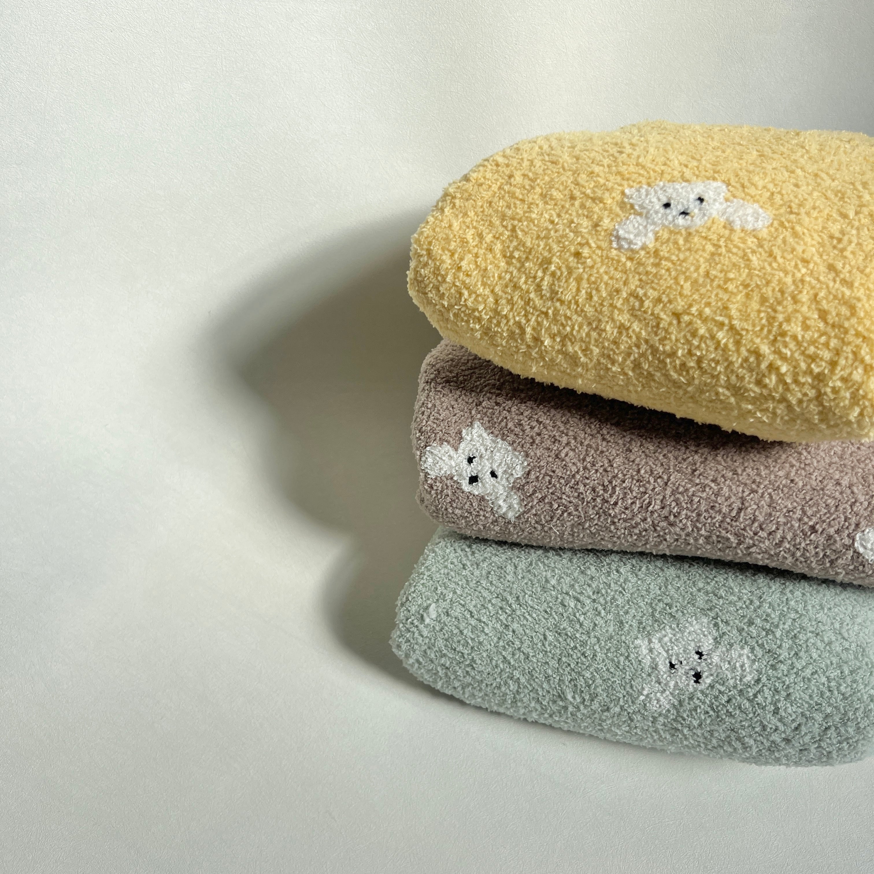 両面ボア生地(プリントクマ顔) 3色から選べる 韓国生地