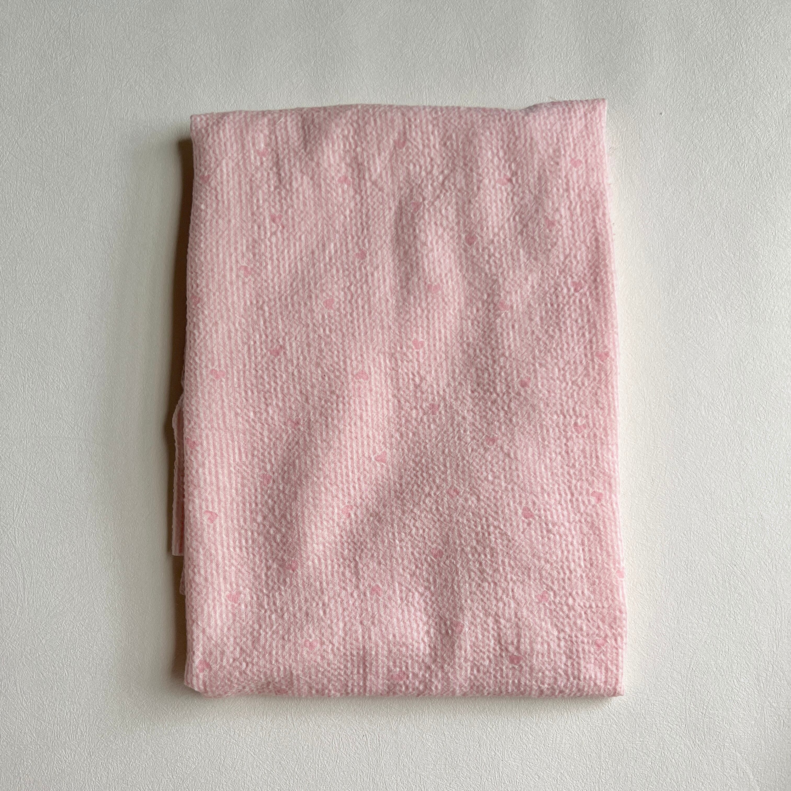 極細ストライプにミニハートが沢山プリントされたポコポコのcotton素材です。