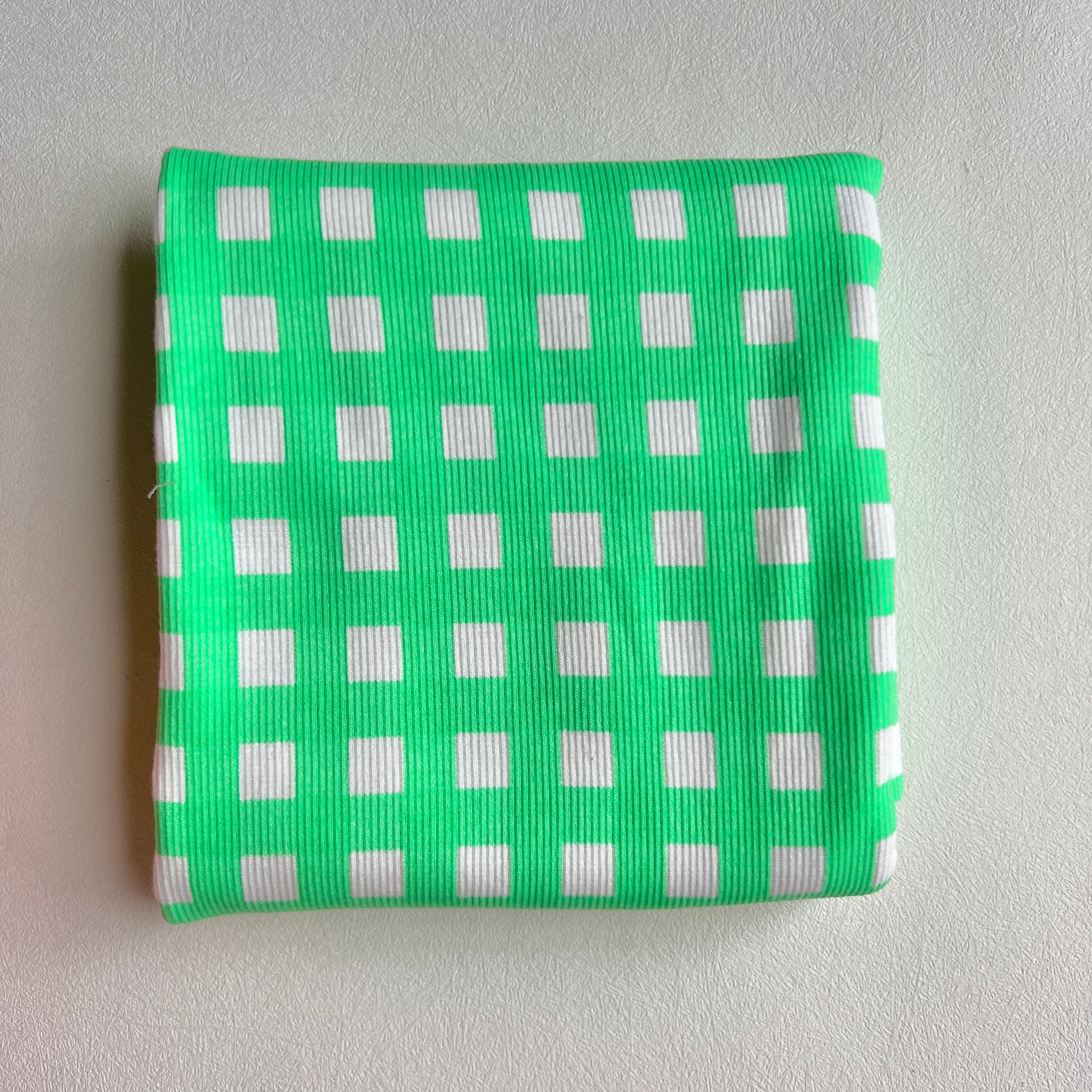 ネオンギンガムチェックのリブニット生地です。