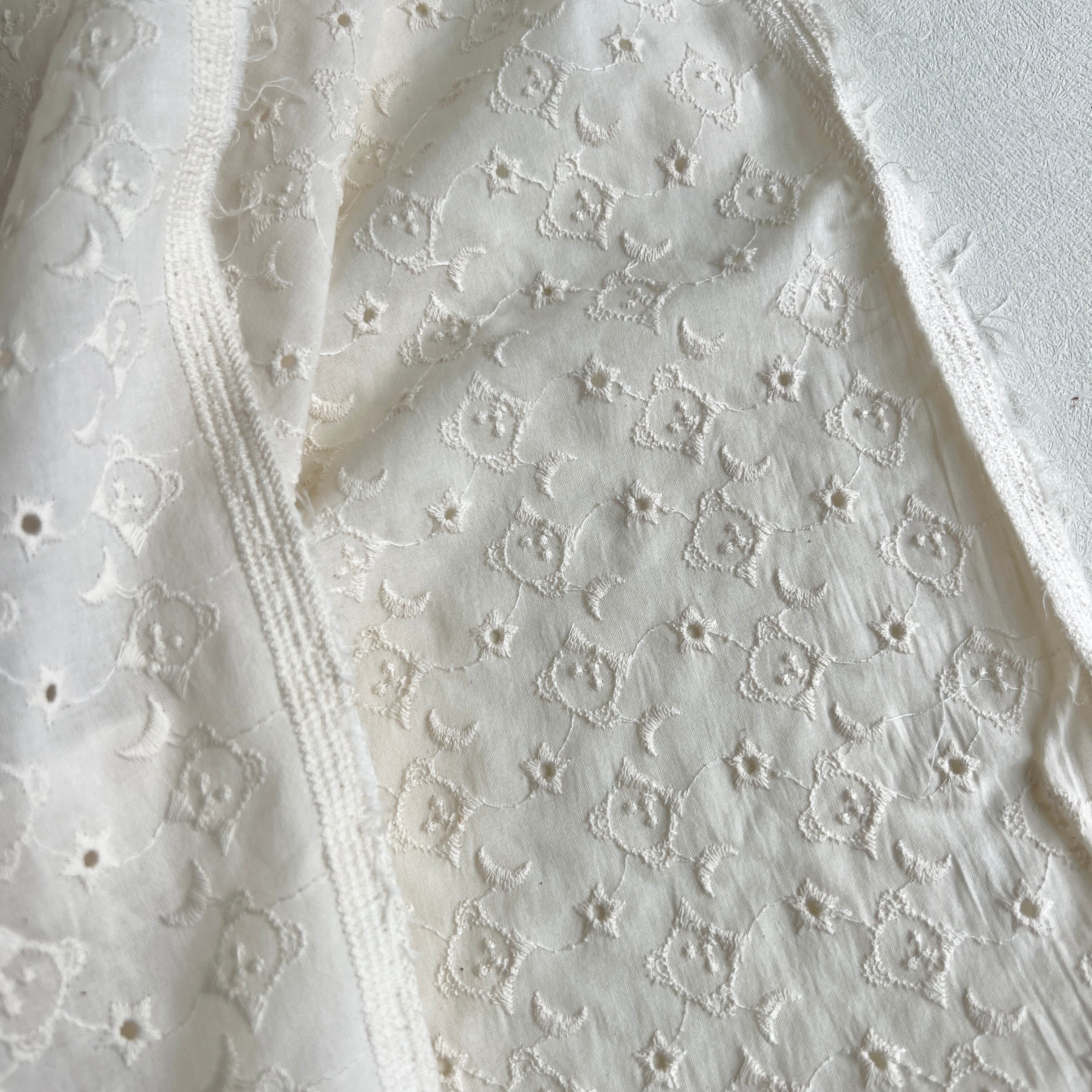 くまさん、月と星の刺繍が沢山入ったcotton刺繍生地です。