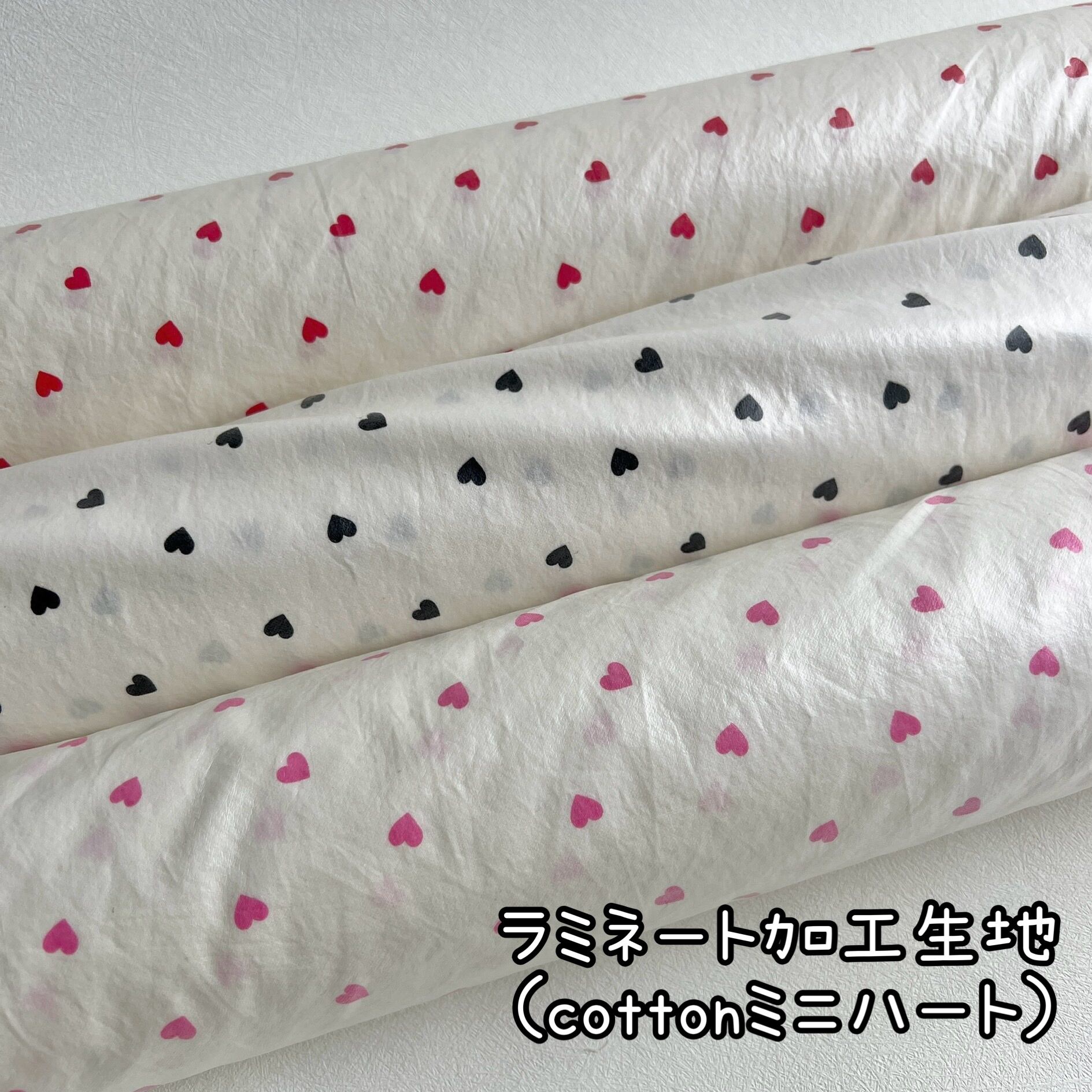 大人気のcottonミニハート生地にラミネート加工を施し入荷いたしました♡