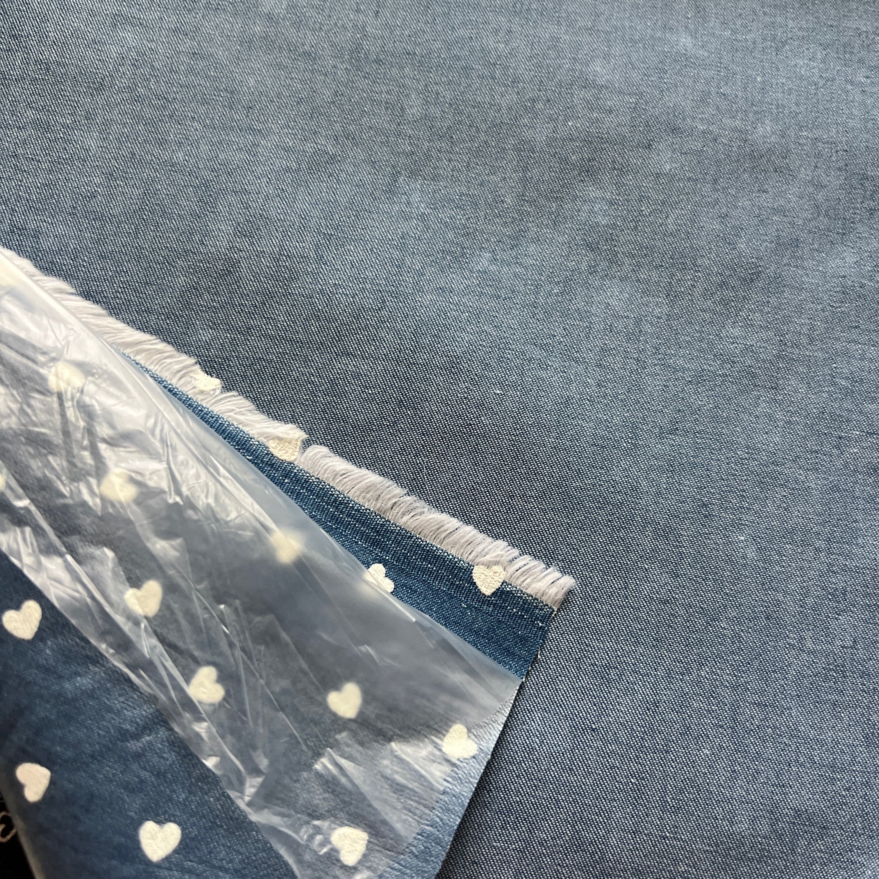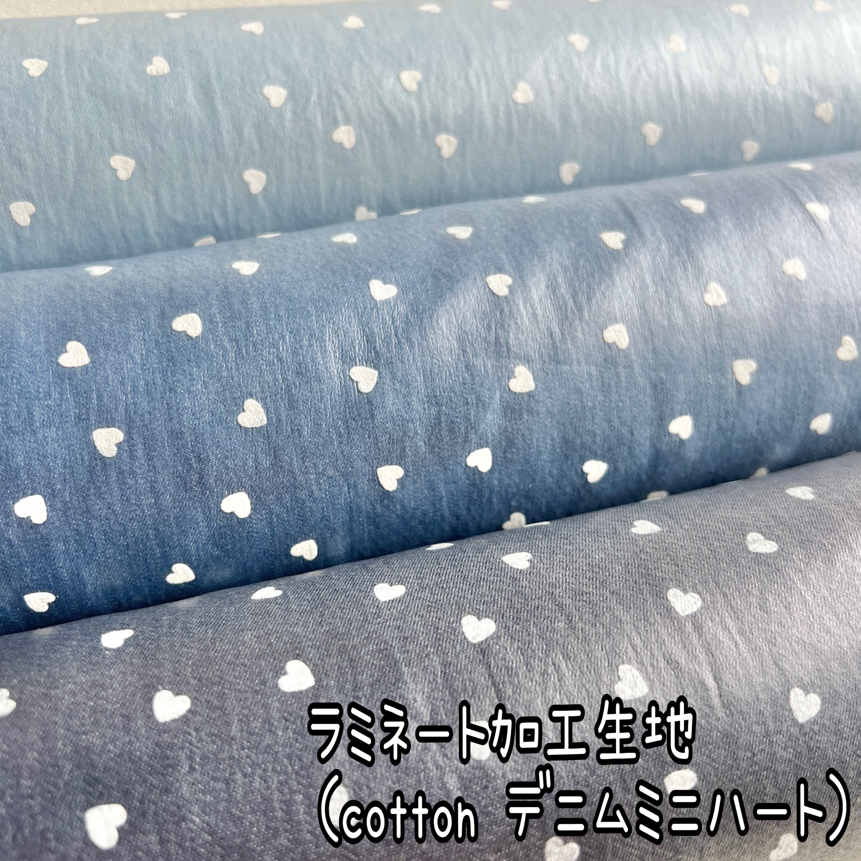 cottonデニムミニハート生地にラミネート加工を施し入荷いたしました♡