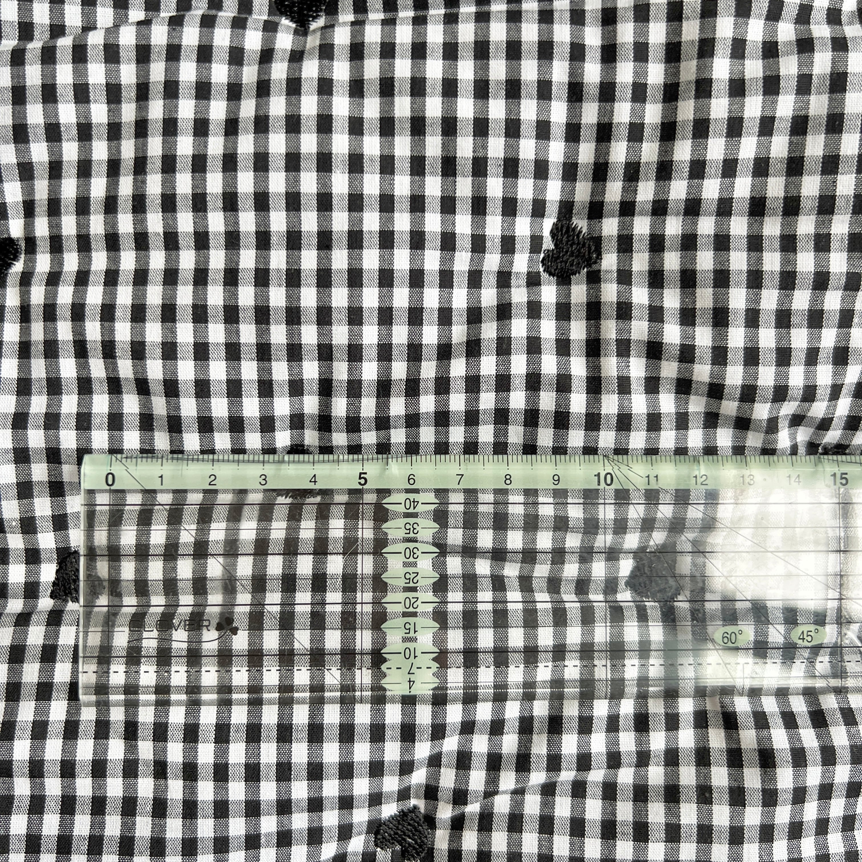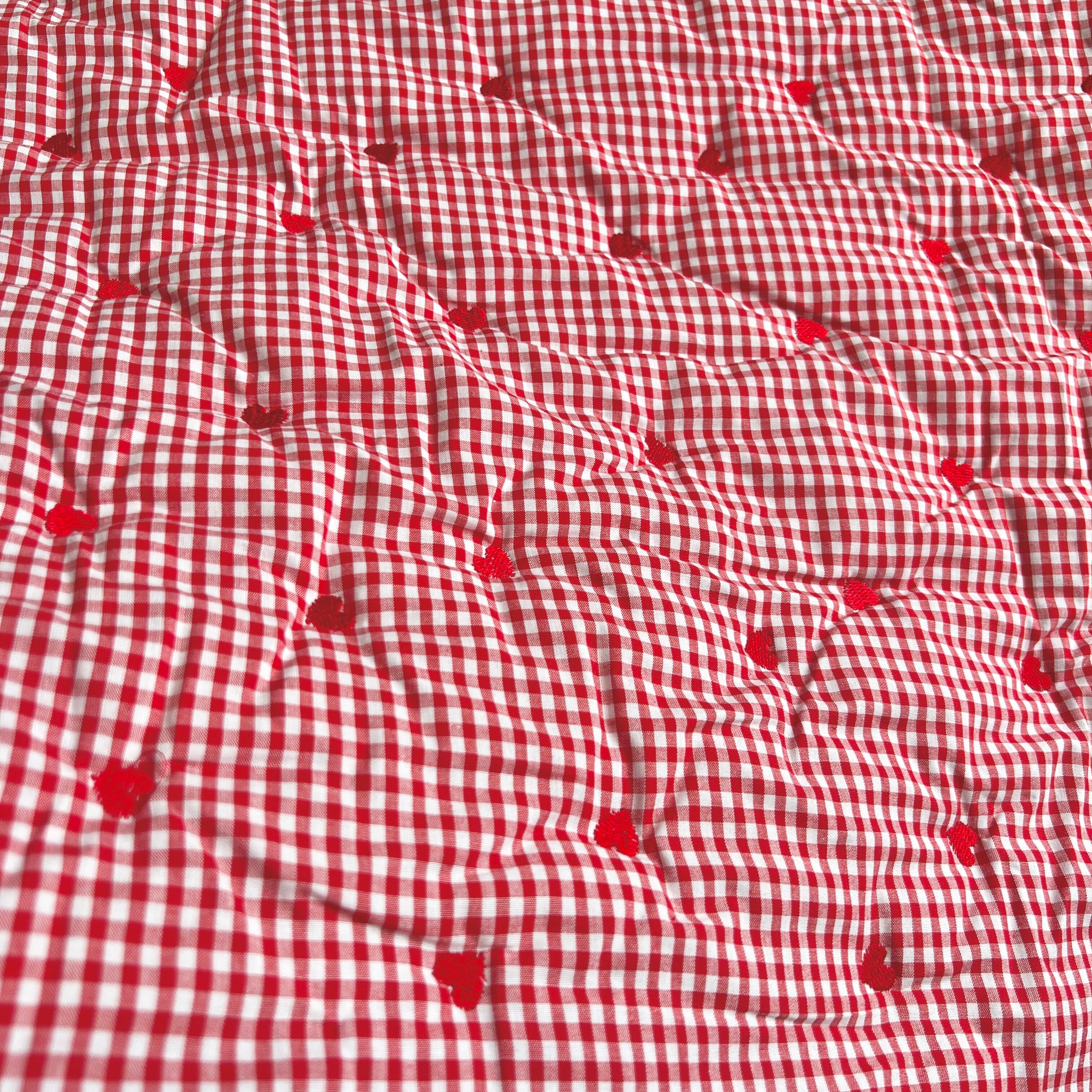 ギンガムチェックにミニハートが刺繍された極厚のヌビ生地です。