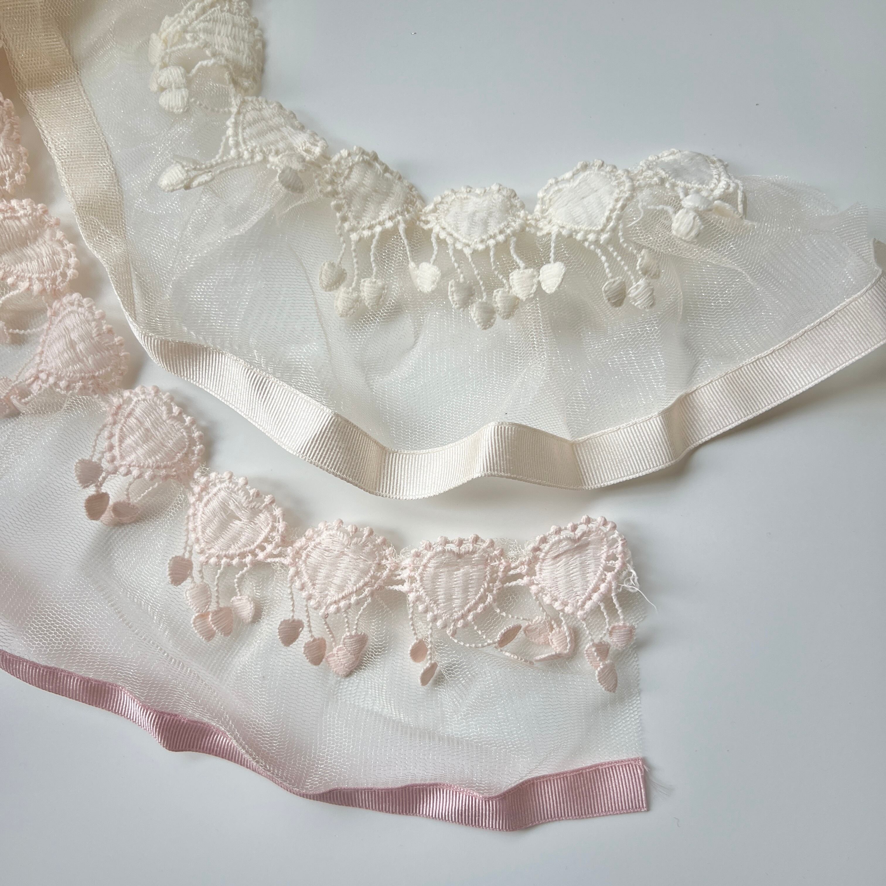 ※3yd以上のフリルリボンのご購入について、仕入れ時から繋ぎ目が縫い合わさっていたり、その箇所を色付きテープで分かりやすく止めていたりする場合がございます。長くご購入の場合この箇所は避けられない状況となり、この場合での不良品のための交換は致しかねます。