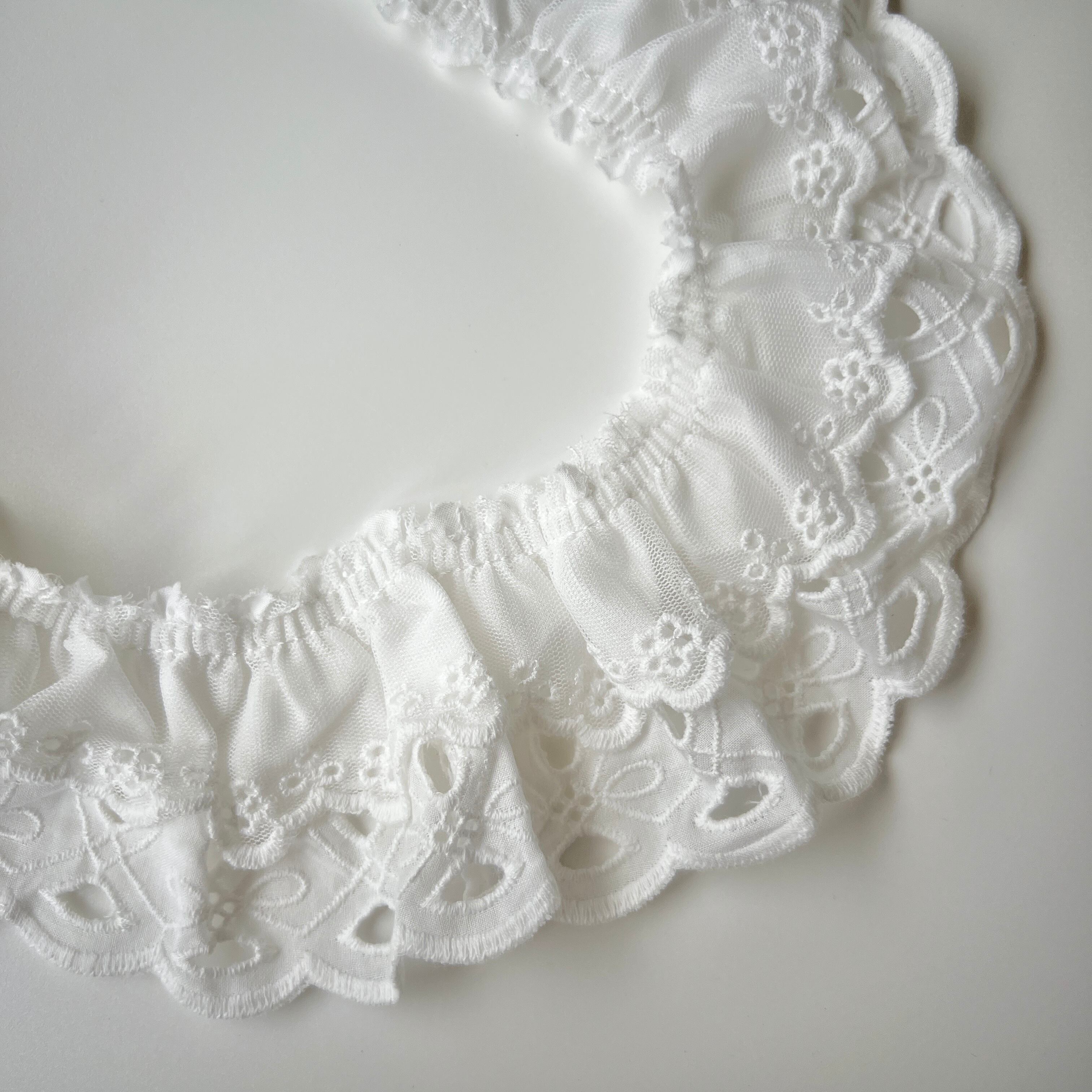 ※3yd以上のフリルリボンのご購入について、仕入れ時から繋ぎ目が縫い合わさっていたり、その箇所を色付きテープで分かりやすく止めていたりする場合がございます。長くご購入の場合この箇所は避けられない状況となり、この場合での不良品のための交換は致しかねます。